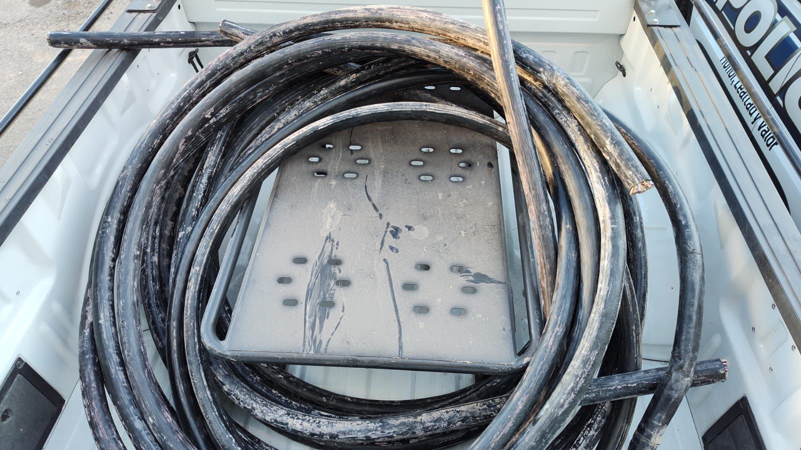 En respuesta, agentes municipales llegaron al sitio sorprende a dos sujetos extrayendo el cable por lo que procedieron a detenerlos, mientras que un tercer individuo que se encontraba a bordo de una camioneta Ford Expedition de color verde con placas de California, Estados Unidos, emprendió la huida siendo detenido tras una breve persecución.