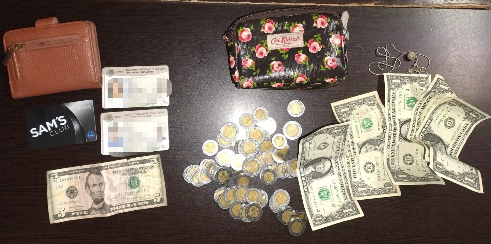 Una vez obtenidas las características físicas y el tipo de vestimenta de los presuntos responsables del robo, agentes de la Policía Municipal implementaron un operativo de búsqueda por los alrededores hasta lograr ubicar y asegurar a dos de ellos, además de recuperar dos monederos con dinero en efectivo, credenciales y una cadena plateada.