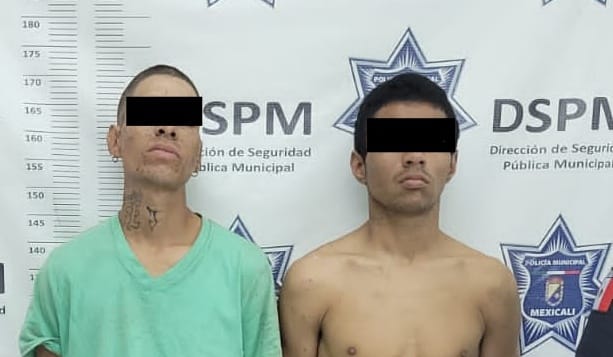 Mexicali, Baja California, a 11 de noviembre de 2025. Agentes de la Dirección de Seguridad Pública Municipal (DSPM) detuvieron este lunes a dos personas por presuntamente participar en un robo con violencia registrado en un restaurante de mariscos, ubicado sobre bulevar Lázaro Cárdenas, casi esquina con calzada 1810, en la colonia Hidalgo.