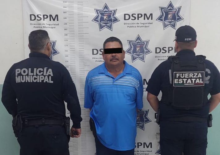 Mexicali, Baja California, a 14 de febrero de 2026. Un hombre señalado de presuntamente lesionar a otro de un disparo de arma de fuego, fue detenido en la colonia Lucerna por agentes de la Policía Municipal de Mexicali y presentado ante las autoridades investigadoras para que se dictamine su situación jurídica.