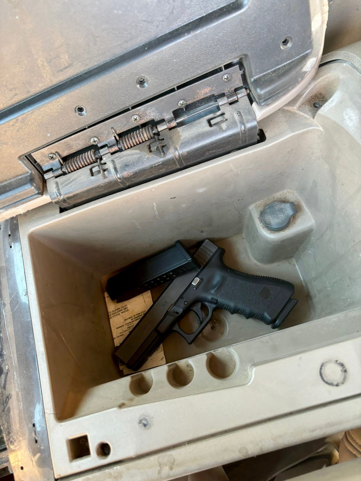 Los agentes realizaron una inspección precautoria a los sospechosos y al vehículo, en donde localizaron un arma de fuego tipo pistola, marca Glock 17, calibre 9 milímetros, de color negro, con dos cargadores abastecidos.