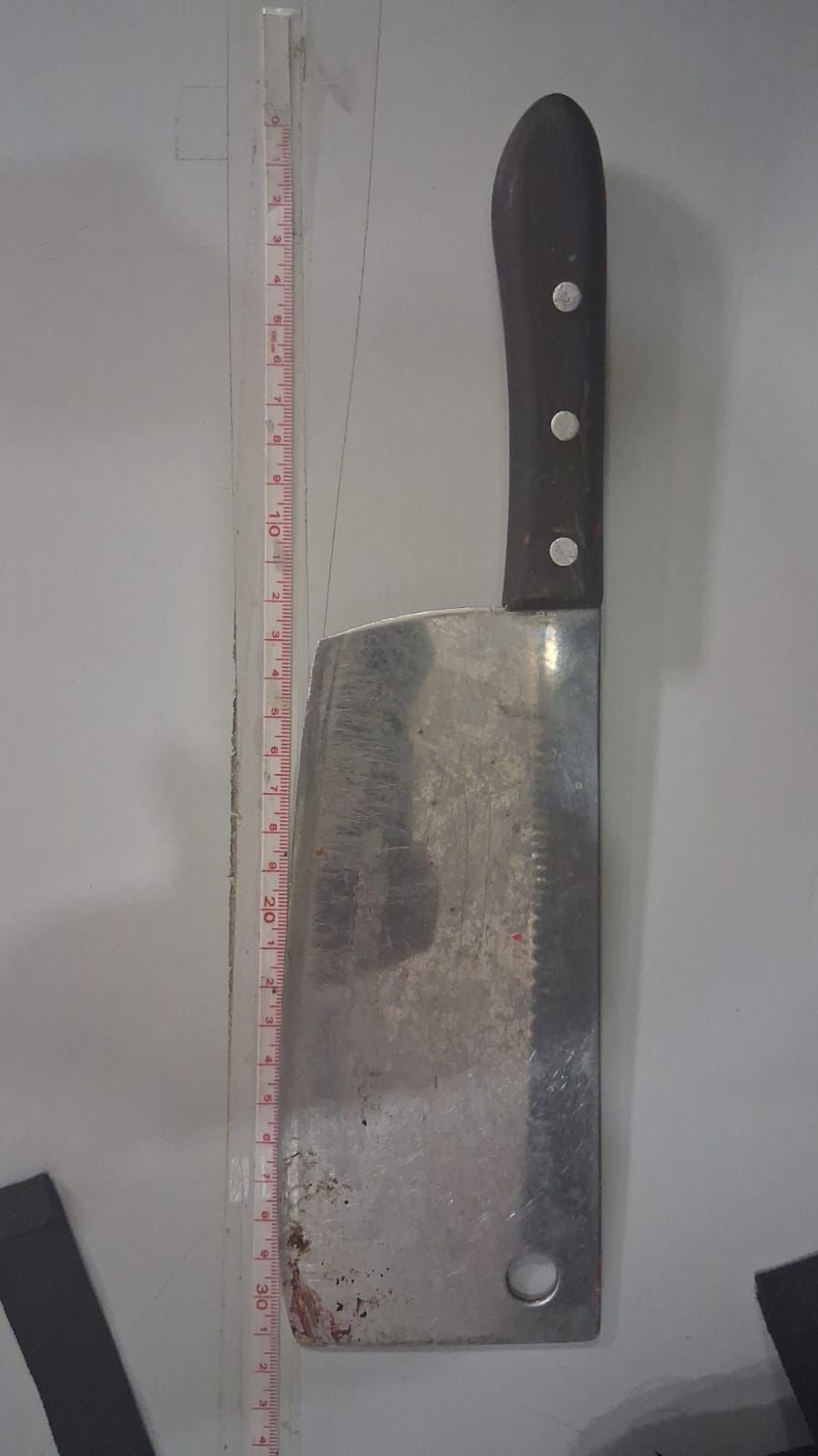 Con la información recabada por parte del afectado y testigos, los agentes desplegaron un operetivo ubicando al presunto responsable sobre la avenida Río del Carmen, por lo que procedieron a abordarlo y tras una inspección preventiva se le encontró entre sus ropas un hacha para cocina, así como la cartera que pertenecía a la víctima.