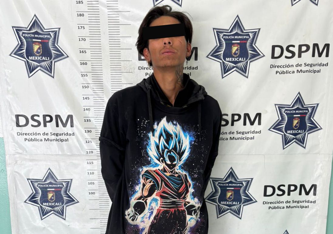 Mexicali, Baja California, a 07 de marzo de 2026. Agentes de la Dirección de Seguridad Pública Municipal (DSPM) detuvieron a un hombre luego de que presuntamente agredió a un transeúnte a quien despejó de su cartera en las inmediaciones del fraccionamiento Valle Dorado; la víctima recibió atención médica en el lugar de los hechos.