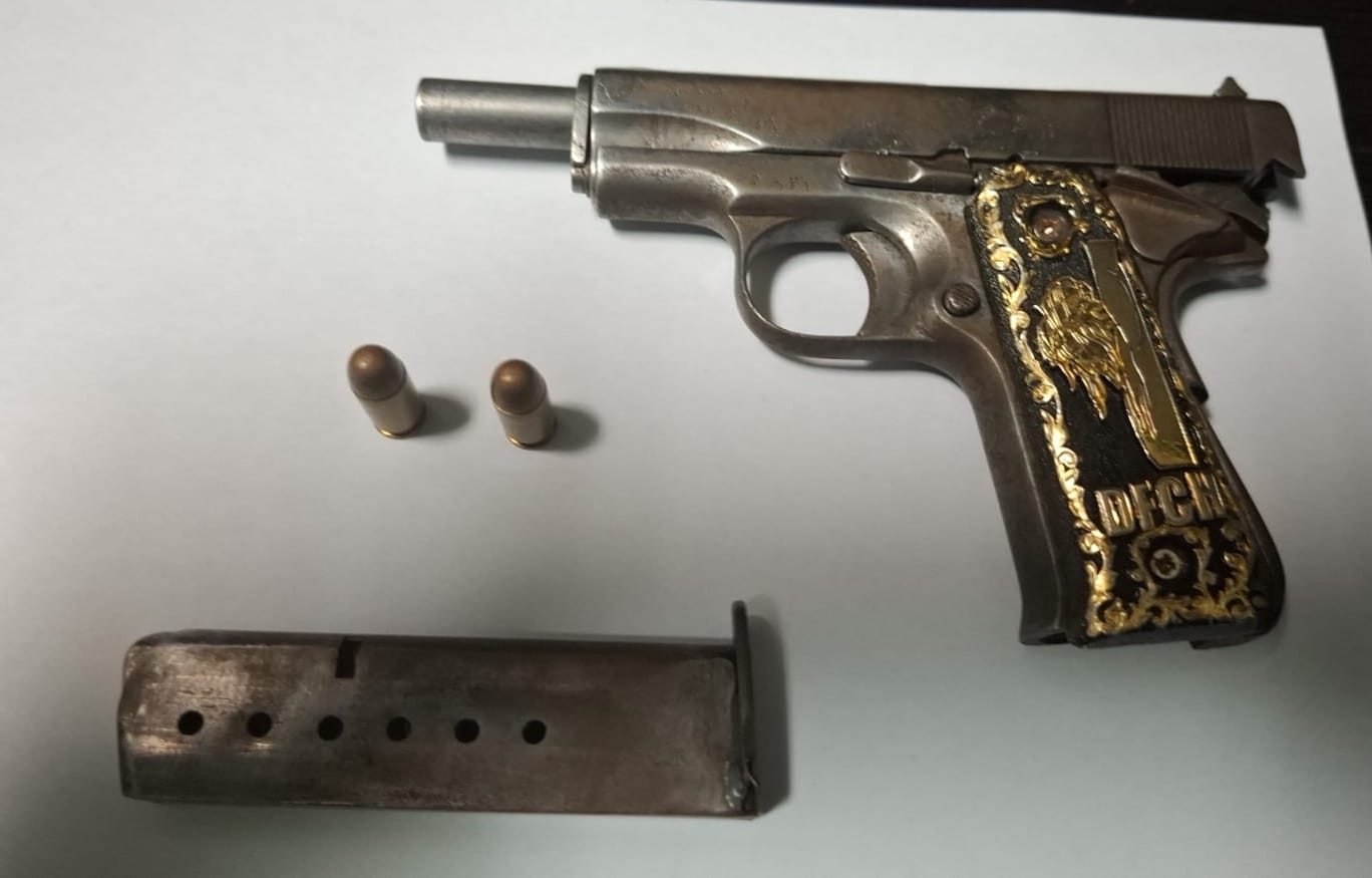 Derivado de un operativo desplegado en los alrededores del fraccionamiento, policías municipales ubicaron y detuvieron a Emiliano Rafael “N”, de 23 años de edad. Durante la intervención se le localizó al sospechoso un arma de fuego tipo pistola escuadra de calibre .380, con cacha dorada y un cargador abastecido con dos cartuchos útiles.