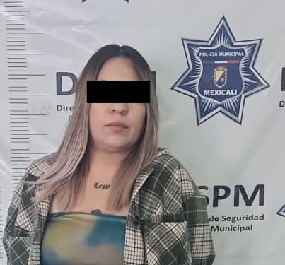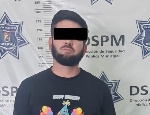Mexicali, Baja California, a 26 de octubre de 2025. Agentes de la Dirección de Seguridad Pública Municipal (DSPM) detuvieron la mañana de este domingo en la colonia El Roble a un hombre y una mujer que se encontraban en poder de un arma de fuego tipo pistola de calibre 9 milímetros.