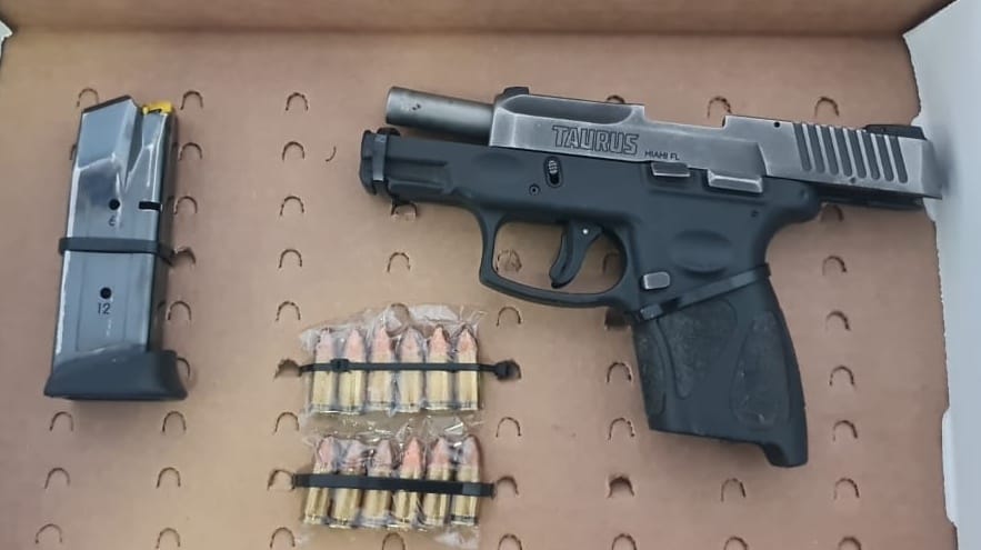 Al ser una acción constitutiva de una falta al Bando de Policía y Buen Gobierno, los agentes municipales llevaron a cabo una intervención y se acercaron a la pareja. Fue al momento de revisar visualmente al interior del automóvil que los uniformados se percataron que en el suelo de lado del copiloto se encontraba un arma de fuego tipo pistola.