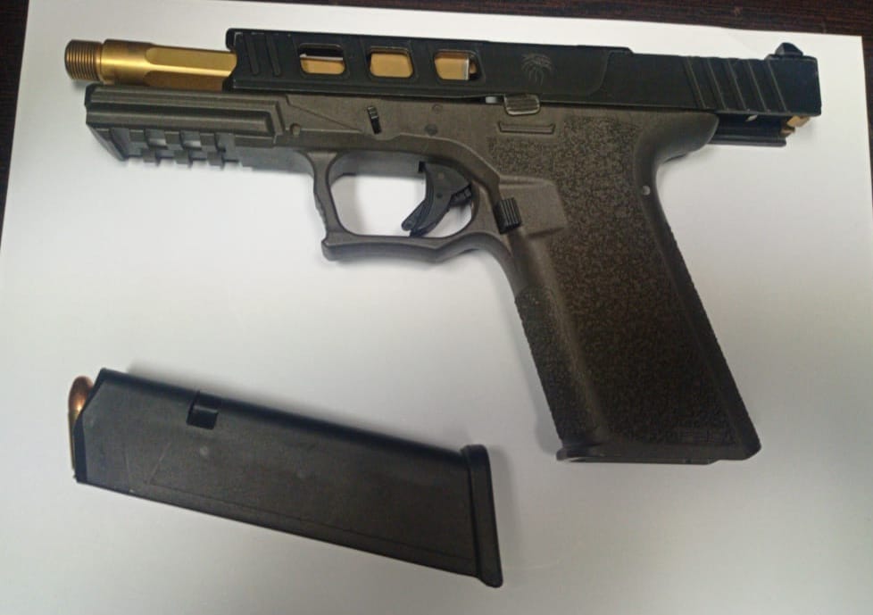 Al momento en que los oficiales realizaron su intervención, la persona que se encontraba de lado del copiloto descendió y sobre sus pies se apreció un arma de fuego tipo pistola de color negro con dorado, de la marca P-80 misma que al inspeccionarla se le observó un cargador abastecido con 09 cartuchos útiles de calibre 9 milímetros.
