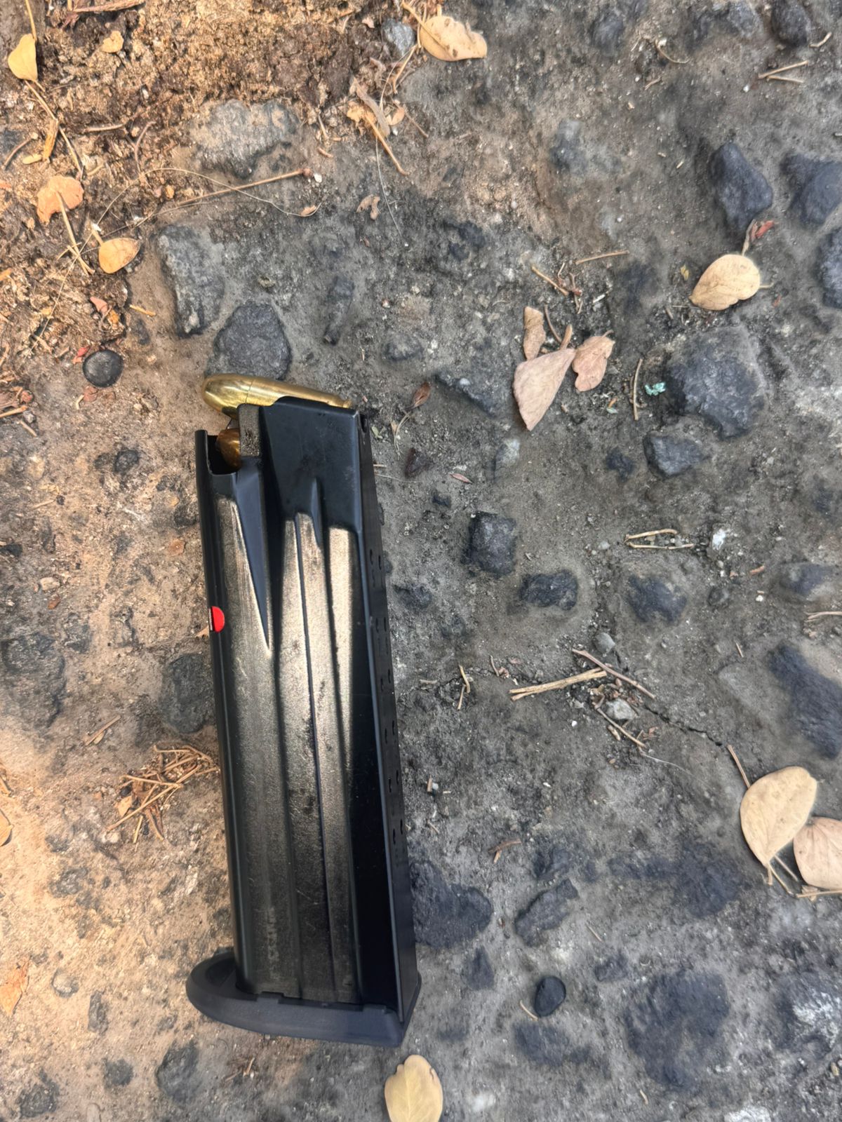 Después de algunos minutos, el sospechoso arrojó el arma tras verse acorralado por elementos de la Policía Municipal y terminó siendo detenido. En el lugar se localizaron cuatro cartuchos percutidos de calibre 9 milímetros.