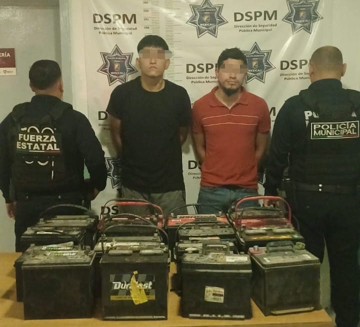 Mexicali, Baja California, a 22 de agosto de 2025. Gracias a una inmediata, oportuna y contundente reacción por parte de agentes municipales y estatales que se encontraban en un operativo coordinado, la madrugada de este viernes fueron detenidos dos hombres considerados objetivos prioritarios por su presunta relación en múltiples robos de baterías de vehículos en la zona urbana de Mexicali.