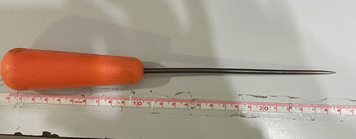 Al tratarse de una infracción al reglamento de tránsito, los agentes municipales le marcaron la parada con código y sirena a dicho vehículo, el cual era tripulado por dos hombres. Posteriormente se les solicitó la documentación del pick up pero el conductor dijo no contar con la misma, motivo por el que se les aplicó una inspección, encontrando un pica hielo y un cuchillo de metal.