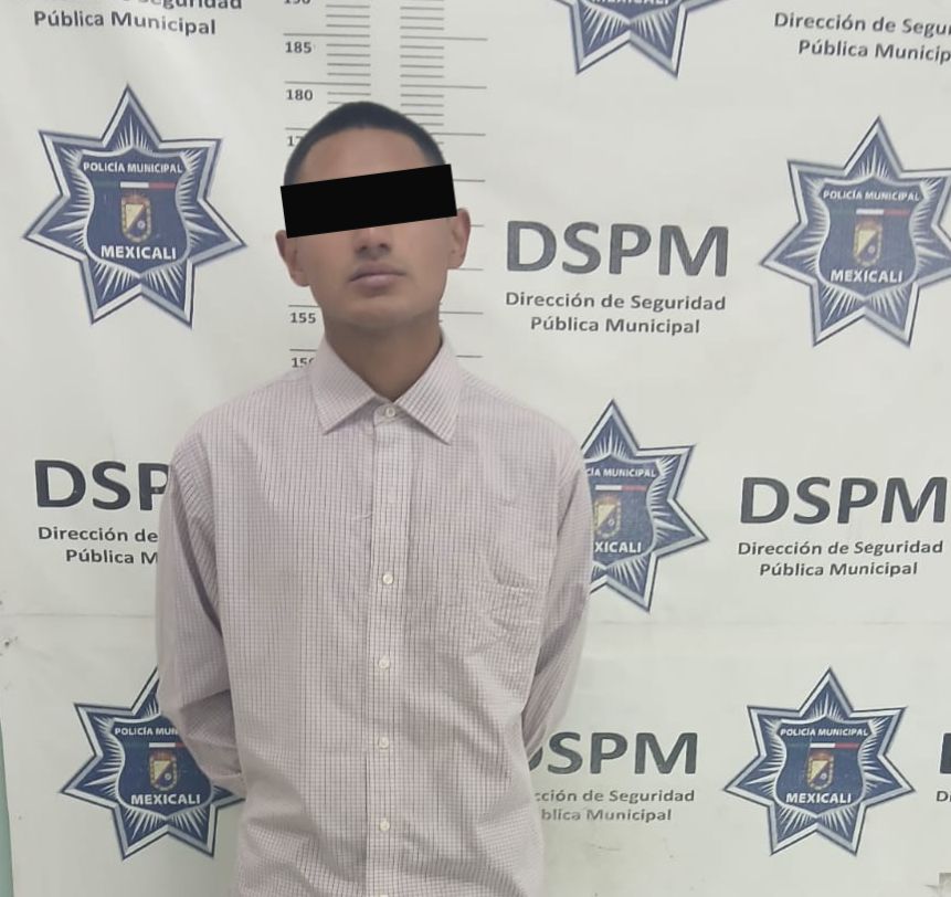 Mexicali, Baja California, a 10 de enero de 2026. Durante operativos de prevención y en atención a un llamado a la línea única para emergencias 9-1-1, elementos de la Policía Municipal lograron la detención de un sujeto señalado de presuntamente haber cometido un robo con violencia en una tienda Oxxo del Ex Ejido Zacatecas.