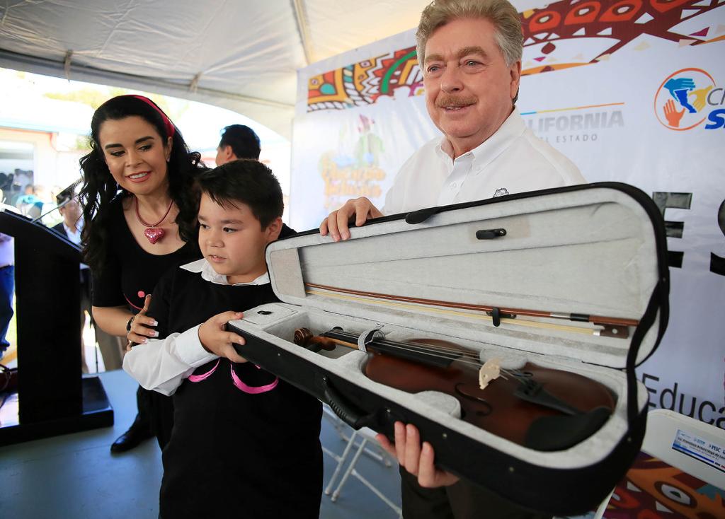 Posteriormente, se hicieron entrega de 12 violines a niños que participarán en el programa “Cerebro y música”, donde personal del Instituto de Cultura de Baja California (ICBC), se les dará clases musicales, como una herramienta adicional para su inclusión en la sociedad.