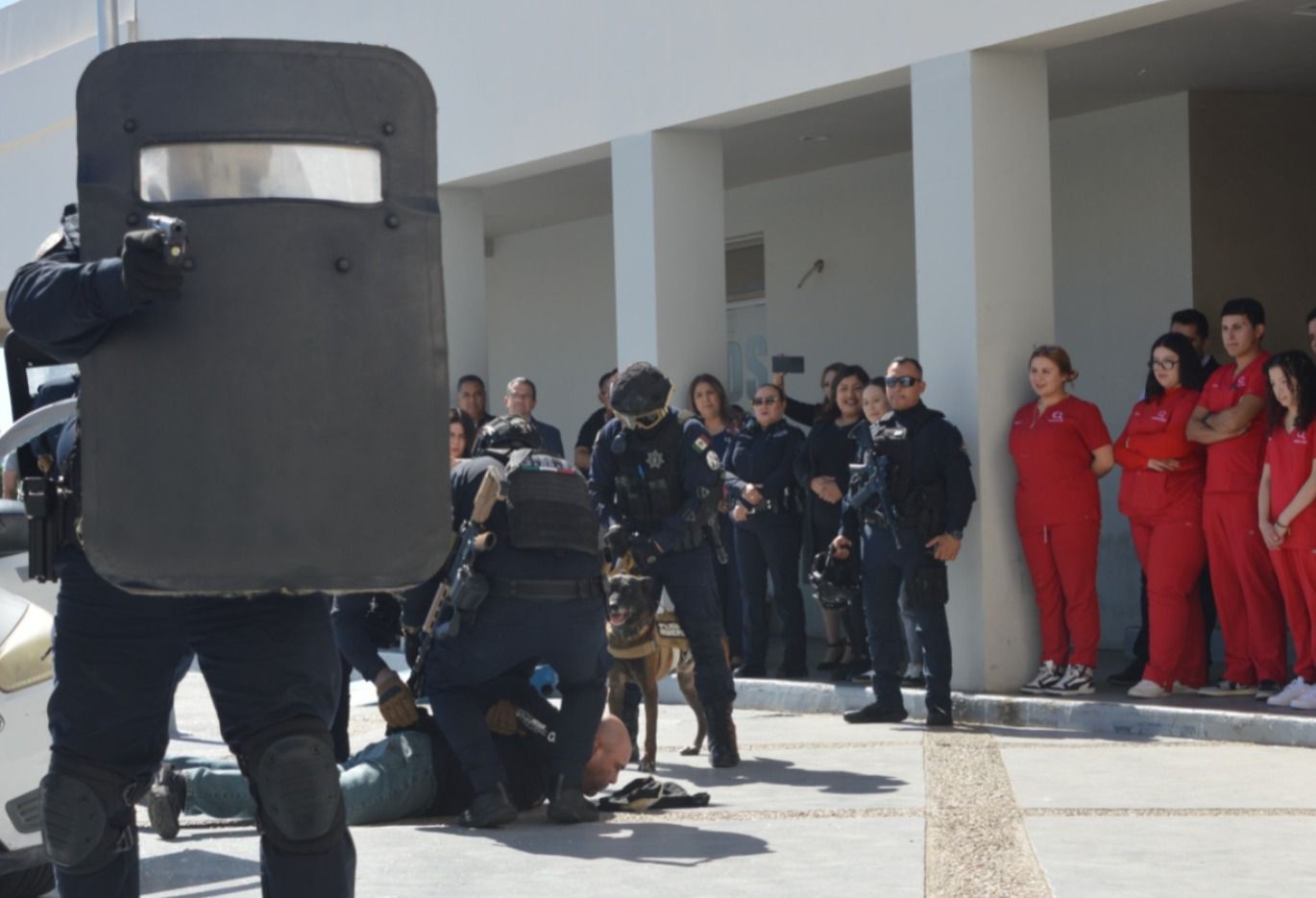 Aunado a ello también se les brindó una demostración de reacción ante una situación de riesgo, en la que intervinieron el Grupo de Reacción Inmediata (G.R.I.) y la Unidad K-9 en un operativo simulado.