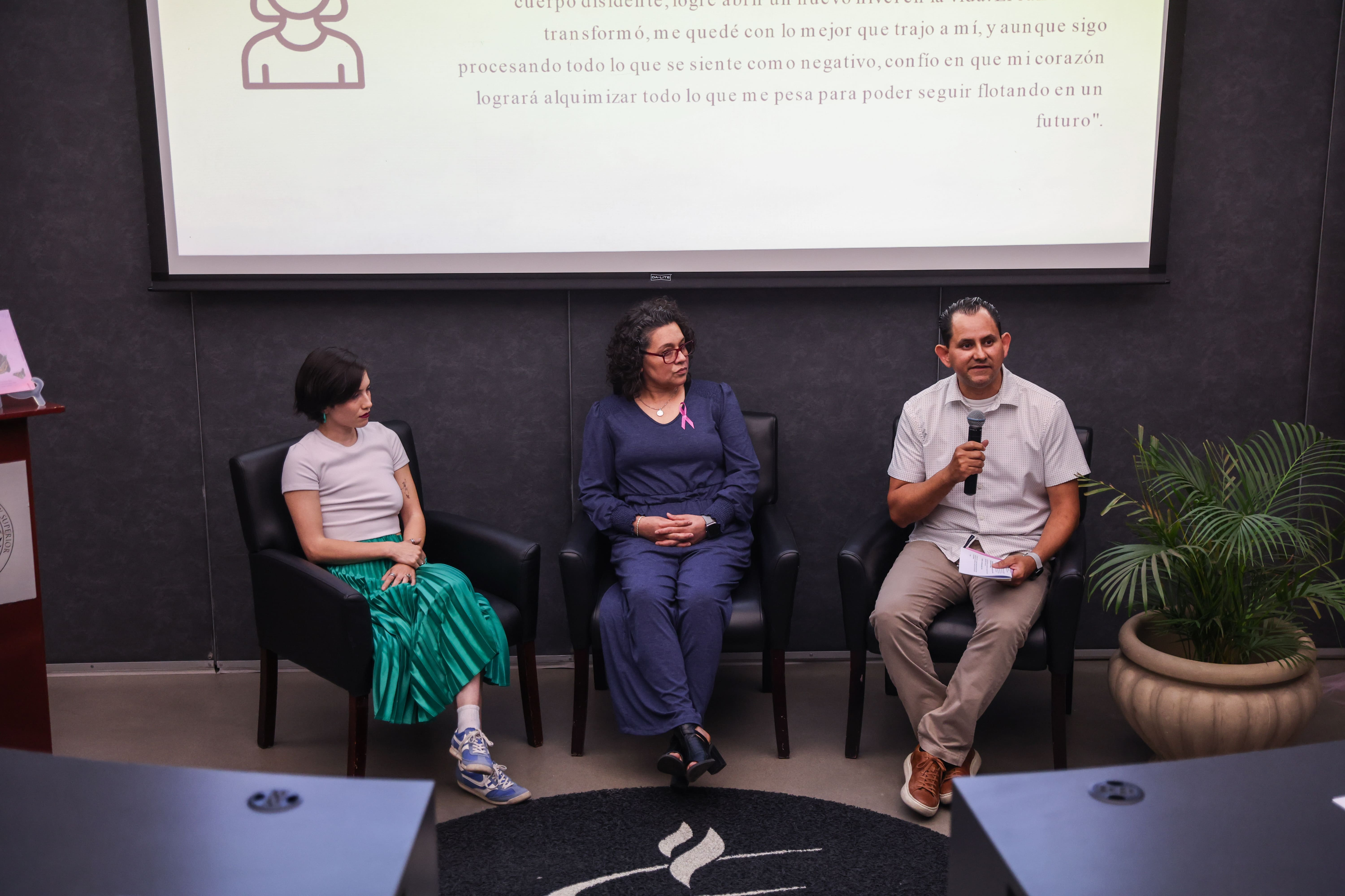 Bajo la moderación del Dr. Carlos González, el evento tomó forma de panel, en el que los testimonios se convirtieron en el eje central. Participaron Lucía Olea Brown y otras valientes mujeres, quienes compartieron fragmentos de sus historias personales plasmadas en la obra.