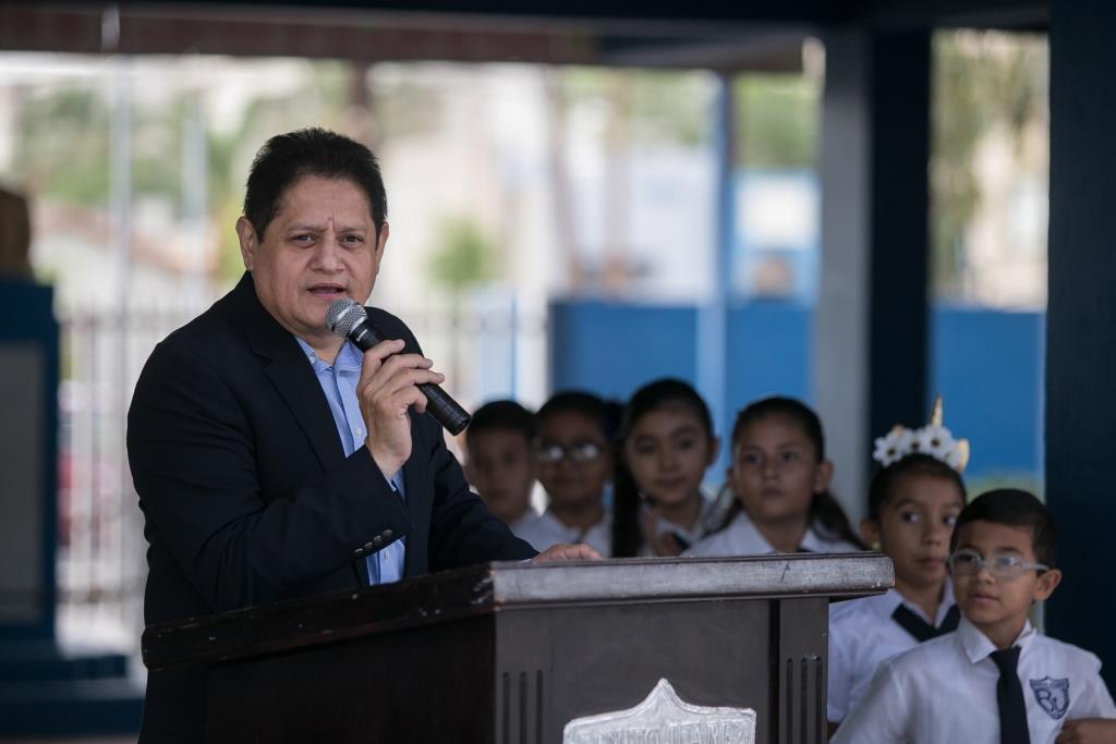 En atención a las instrucciones giradas por el Gobernador del Estado, Francisco Vega de Lamadrid, a las autoridades educativas en el sentido de estar en contacto directo con las escuelas, el Secretario de Educación y Bienestar Social Miguel Ángel Mendoza González, presidió la Ceremonia Cívica de Honores a la Bandera en la Escuela Primaria de Tiempo Completo Benemérito Benito Juárez, ubicada en la colonia Segunda Sección del municipio de Mexicali.