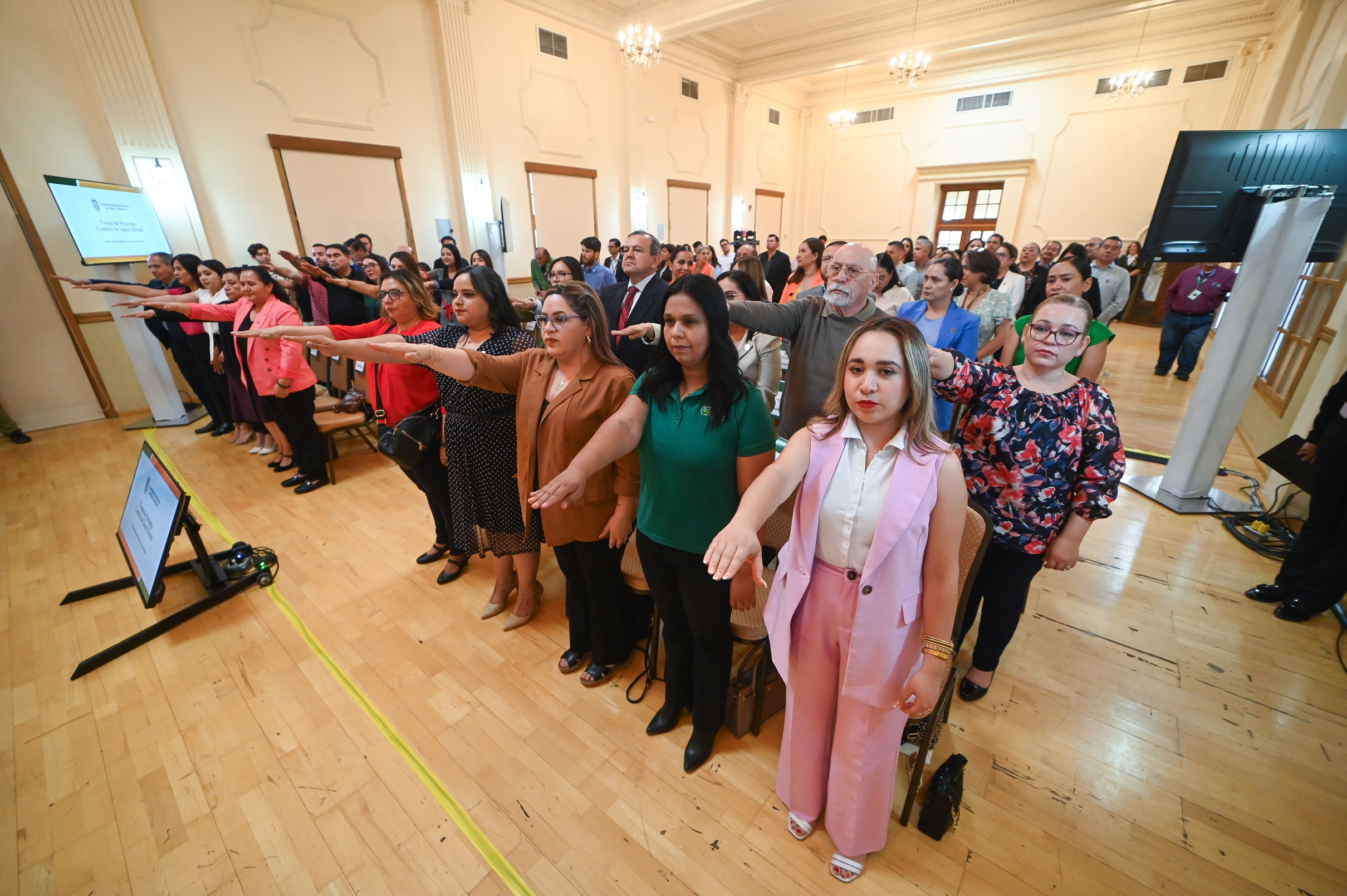 Mexicali, Baja California, viernes 21 de junio de 2024.- A través de los Comités de Salud Mental (COSAME), la Universidad Autónoma de Baja California (UABC) busca impulsar las políticas institucionales de prevención y atención a la comunidad universitaria en aspectos de salud mental y la promoción del bienestar emocional en favor del desarrollo integral de las universitarias y los universitarios, por lo que el día de hoy el rector de la UABC, doctor Luis Enrique Palafox Maestre tomó protesta a las personas que integrarán los COSAME en cada campus.