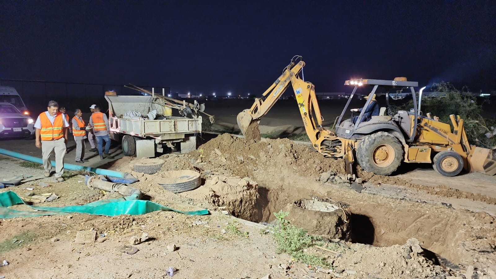 Para realizar los trabajos en cuestión se trasladó equipo y maquinaria pesada por parte de las cuadrillas del Departamento de Operación y Mantenimiento de Redes, que llevaron a cabo trabajos de desazolve y mantenimiento de 3 pozos de visita.