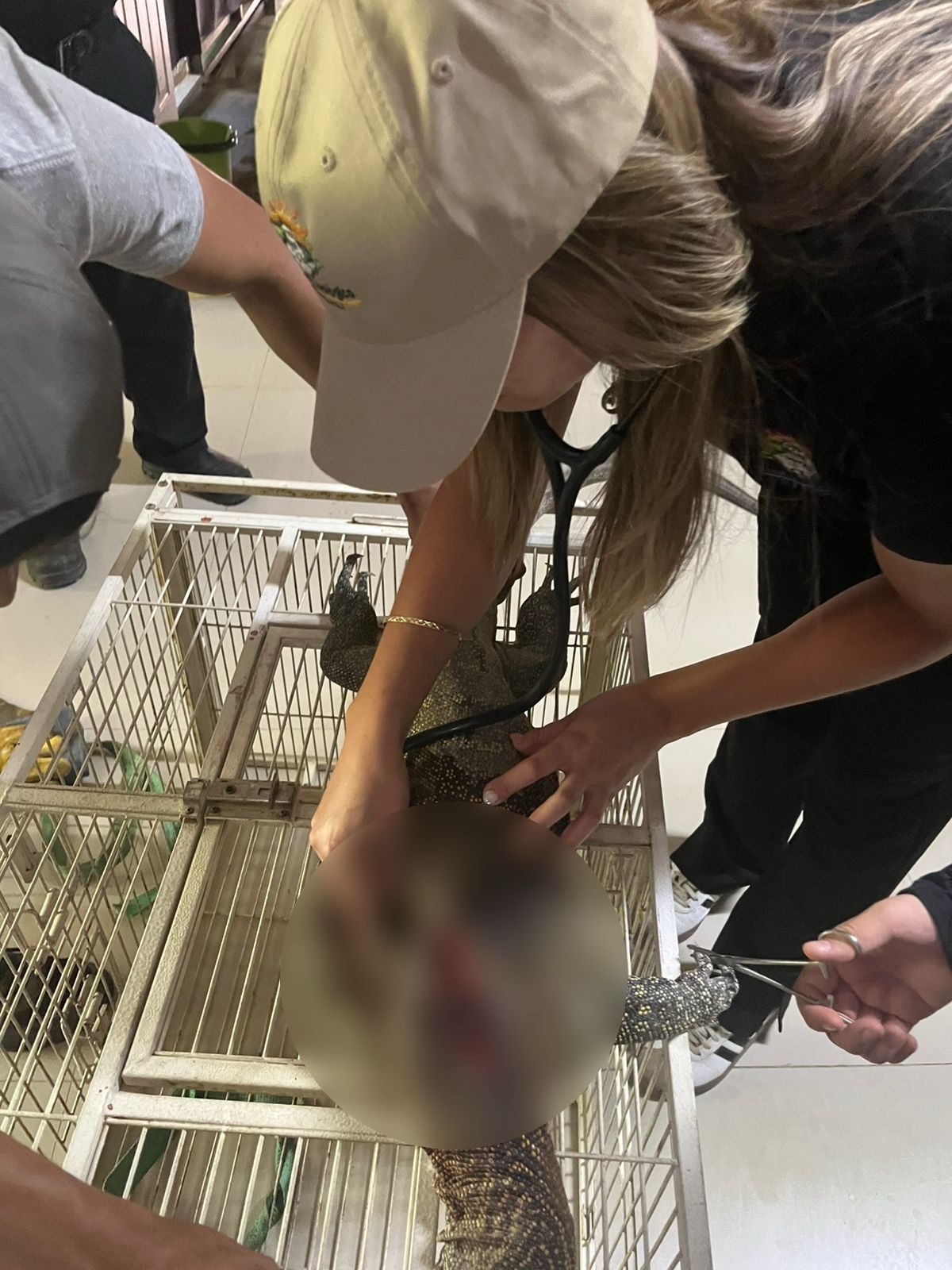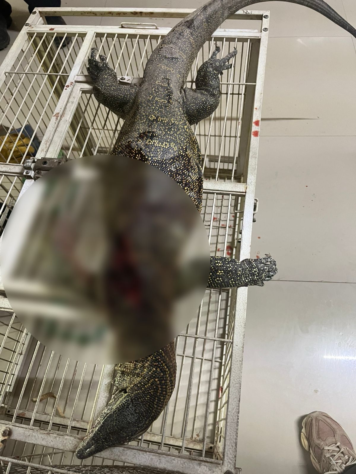 El varano tenía un peso de alrededor de 11 kg y un tamaño de 1.67 m de largo. Se continuó con el examen físico, confirmando que el ejemplar es macho. Se concluye que, debido a la gravedad de las lesiones, el ejemplar perdió la vida. La exploración fue por parte de médicos veterinarios del Bosque y Zoológico de la Ciudad.