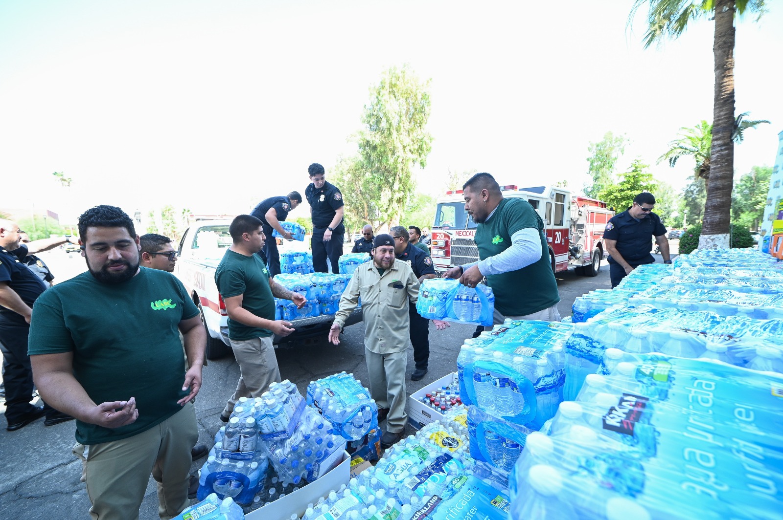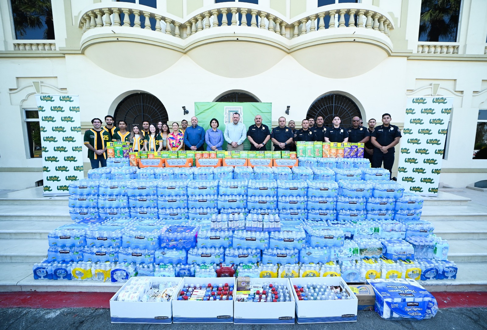 El donativo fue conformado gracias a la respuesta comprometida de la comunidad universitaria, que participó activamente en una campaña de acopio impulsada desde el Campus Mexicali por las Sociedades de Alumnas y Alumnos, así como por personal administrativo de Rectoría y del colegio de directoras y directores de los tres campus universitarios. La colecta reunió 236 cajas de agua embotellada, 48 cajas de barras energéticas y 130 latas de atún, insumos que contribuirán a salvaguardar la salud e integridad de los elementos en campo.