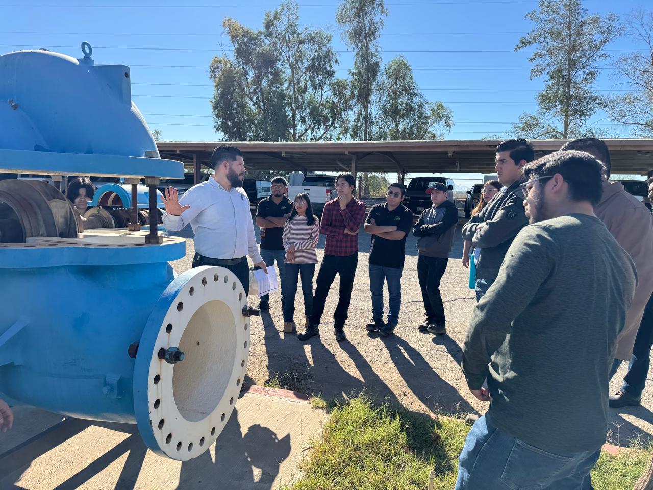 Mexicali, Baja California.- Con el objetivo de fortalecer la vinculación entre la formación académica y la aplicación práctica en la gestión de los recursos hídricos, la Comisión Estatal del Agua de Baja California (CEA) recibió en las instalaciones del Acueducto Río Colorado-Tijuana a un grupo de estudiantes de la carrera de Ingeniería Mecánica de la Universidad Autónoma de Baja California (UABC).
