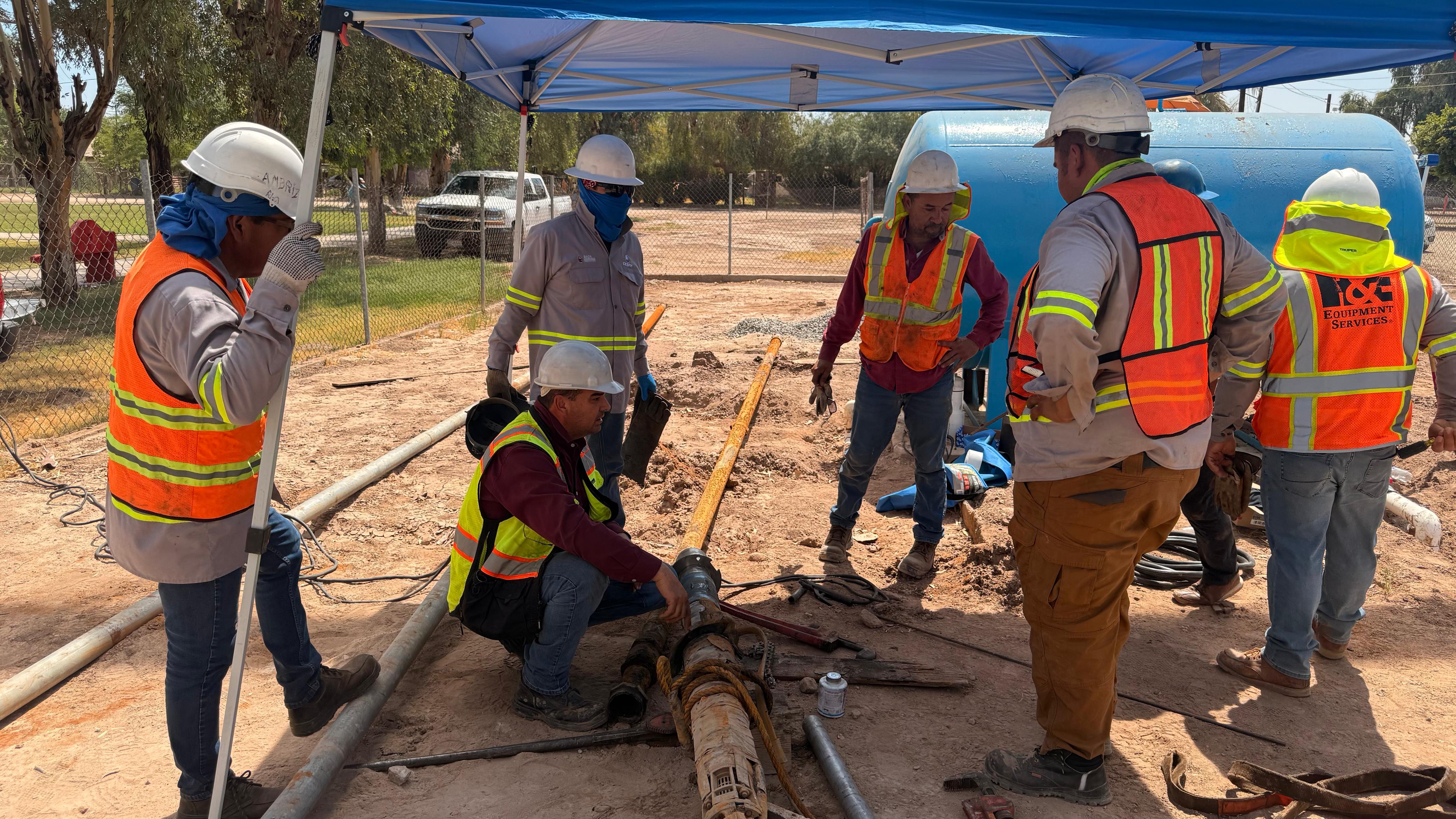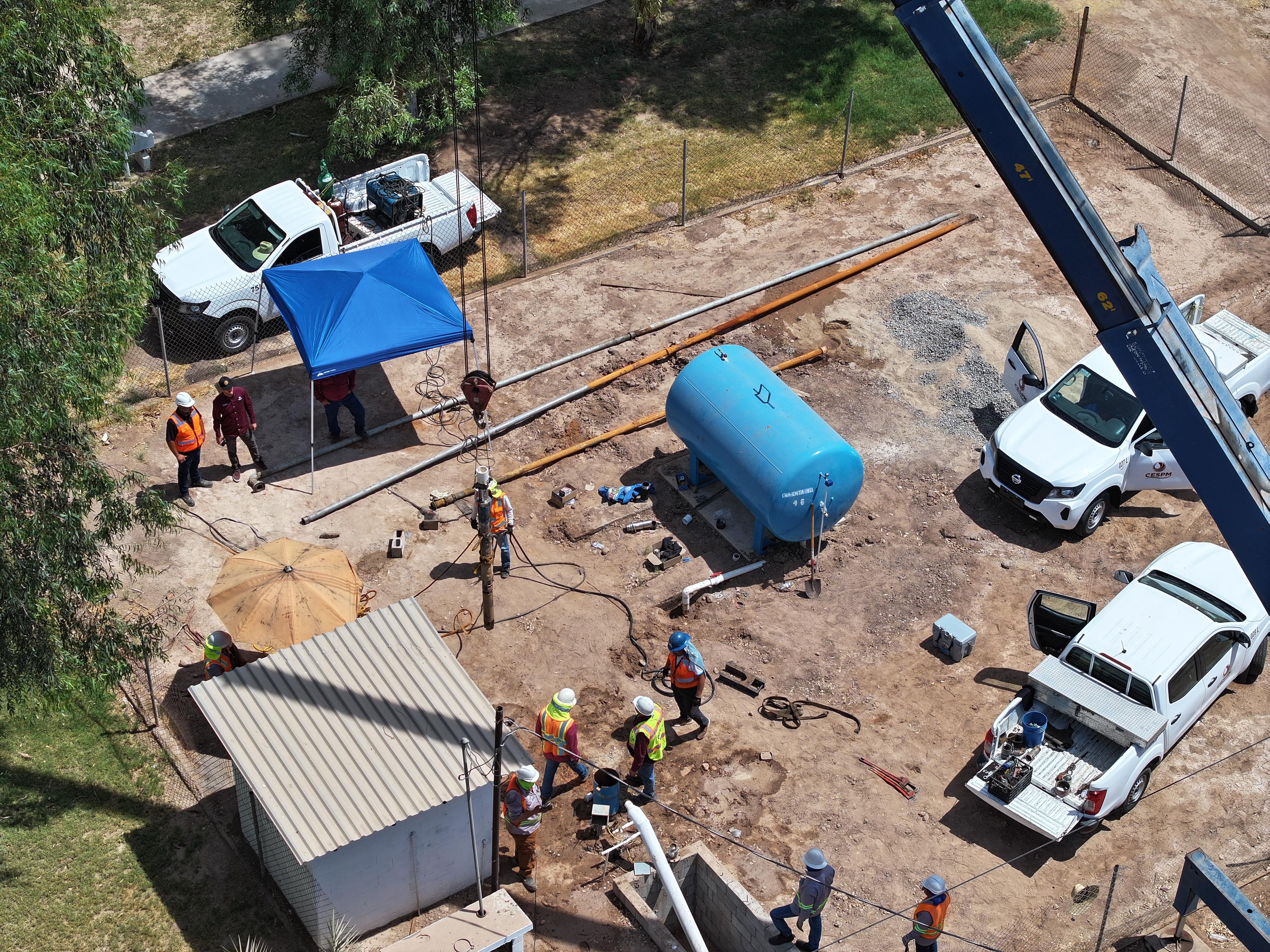Los trabajos consistieron en la reposición de componentes clave, entre ellos un cabezal de descarga de 4 pulgadas, 11 tramos de tubo serie 250 PVC de 10 pies de largo y 4 pulgadas de diámetro, así como un arnés para tubo de columna de la misma medida. También se instalaron un niple de acero de 4 pulgadas, dos adaptadores (superior e inferior) de 4 pulgadas y una válvula check que contribuirá a un flujo adecuado y seguro del suministro.
