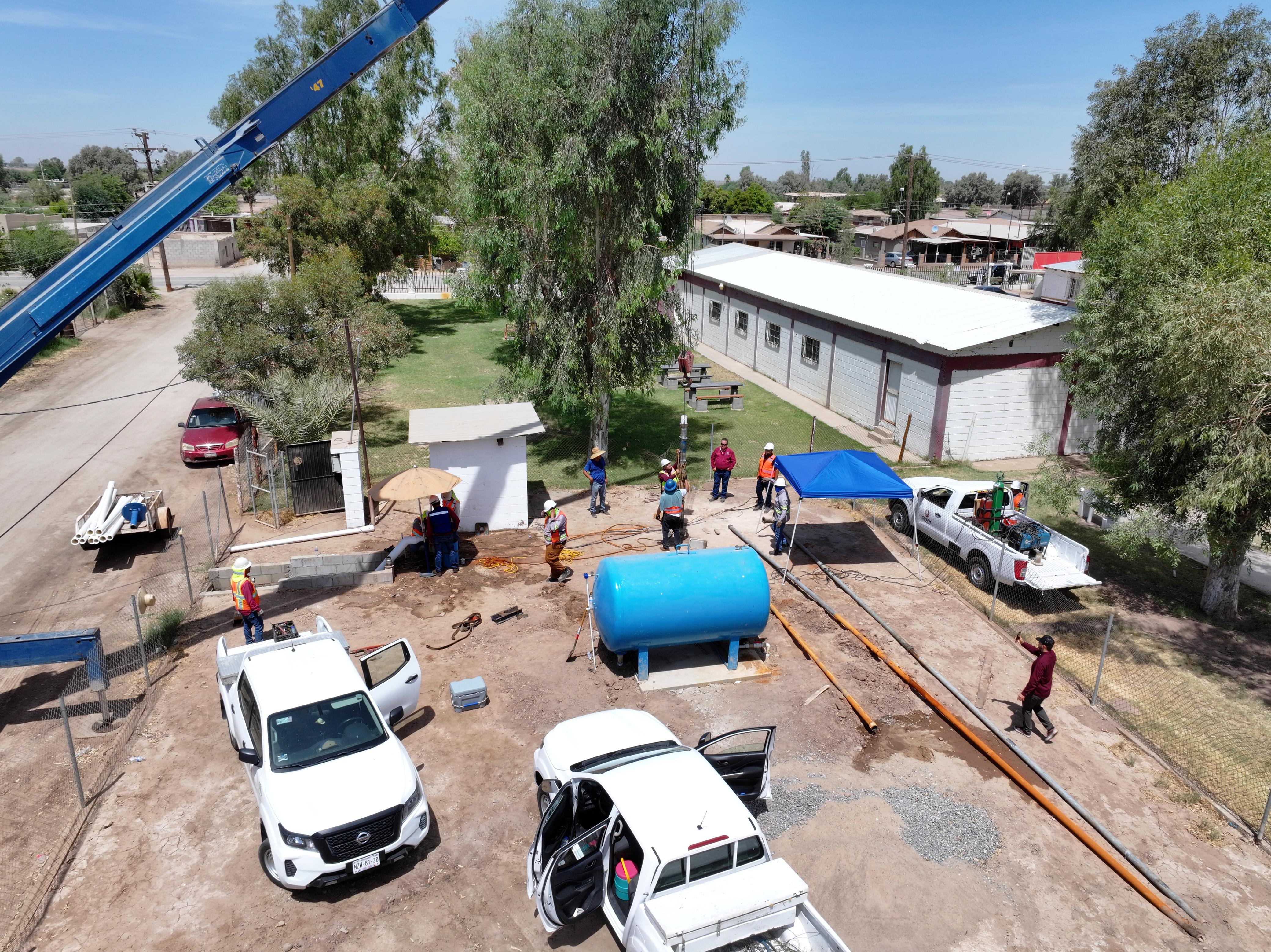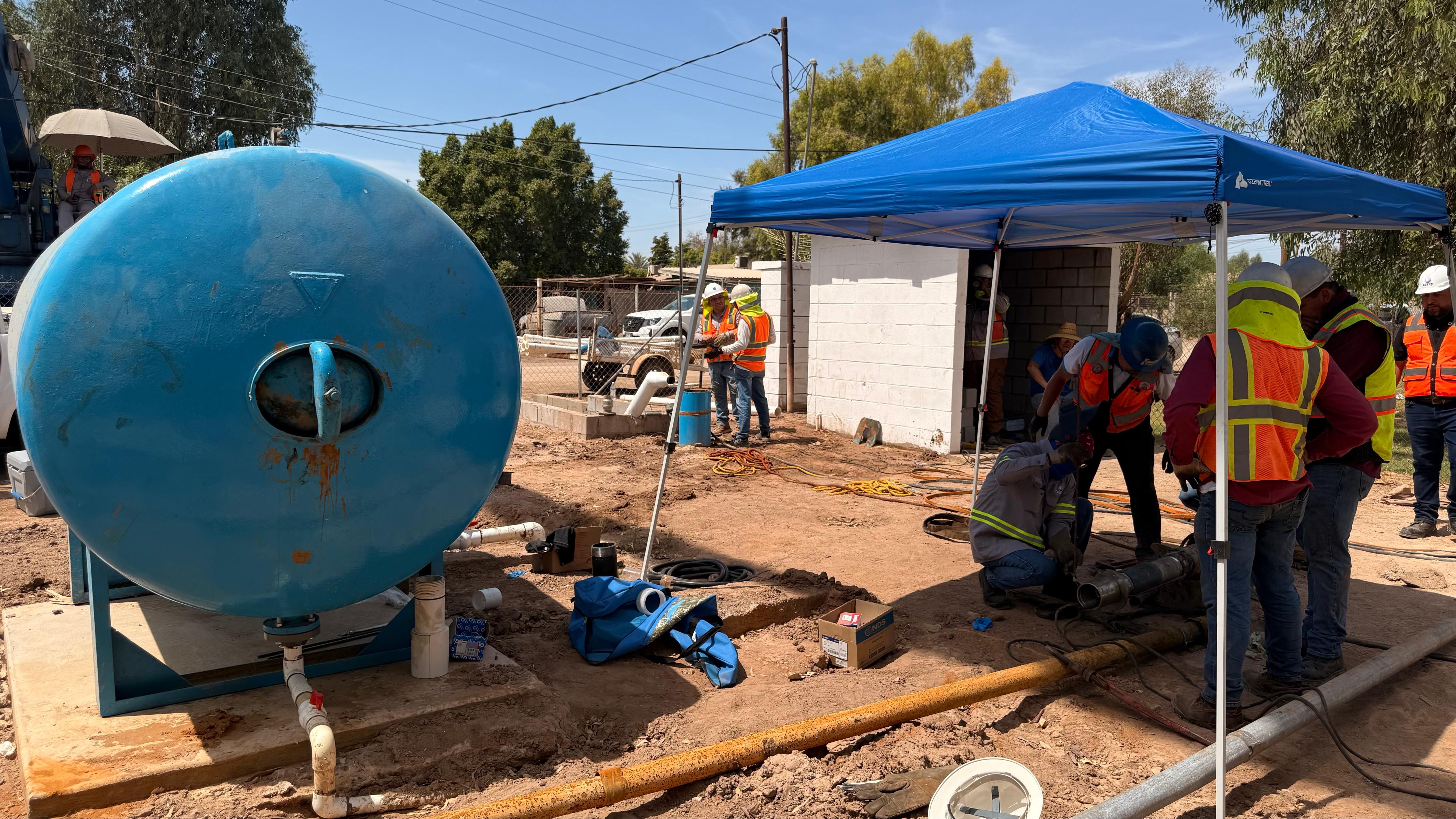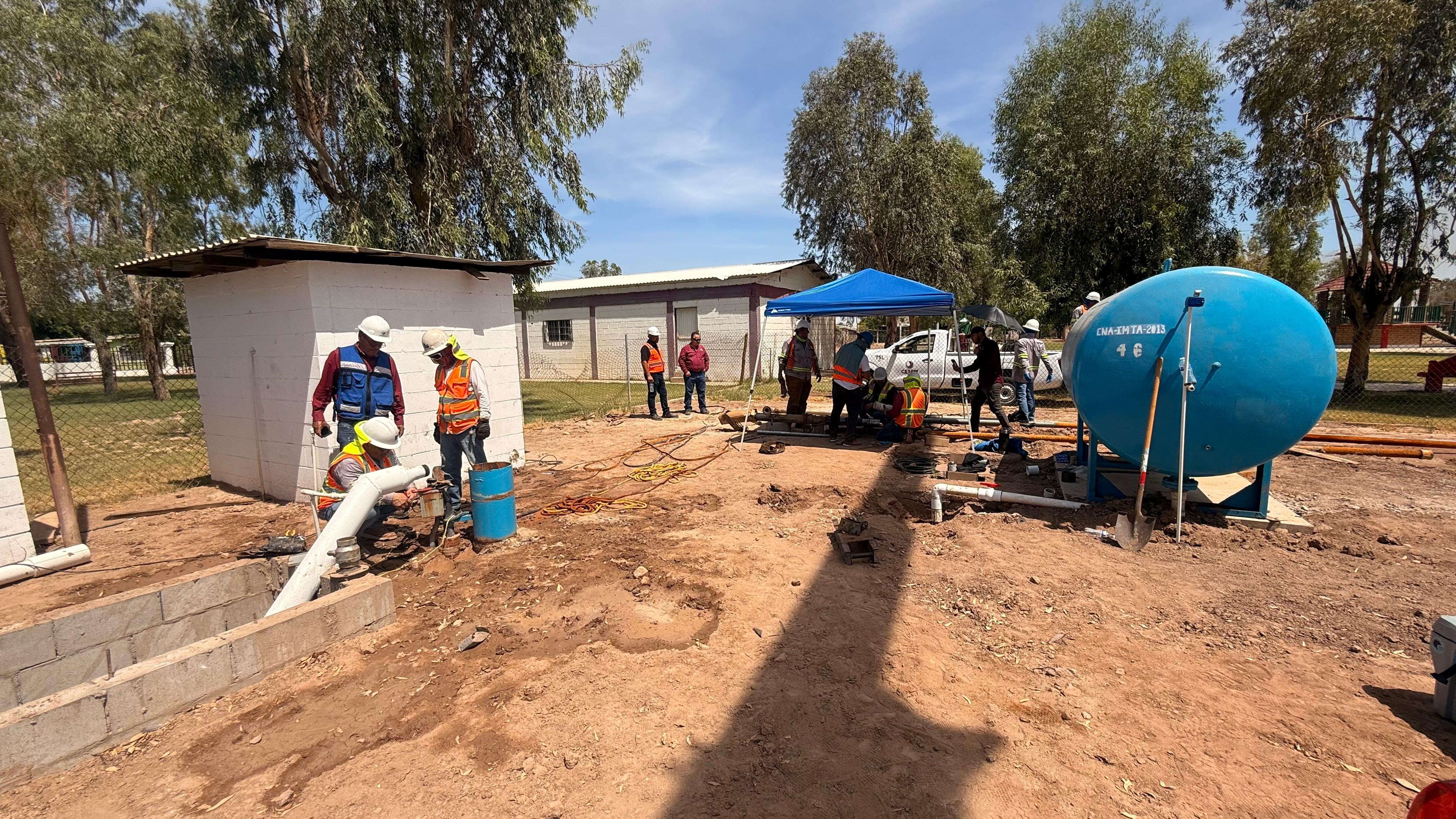 Mexicali.- En respuesta a las necesidades de los habitantes del Ejido México, la Comisión Estatal de Servicios Públicos de Mexicali (CESPM) brindó apoyo con la instalación de nueva infraestructura para el sistema de agua potable, con el propósito de mejorar la calidad y continuidad del servicio.