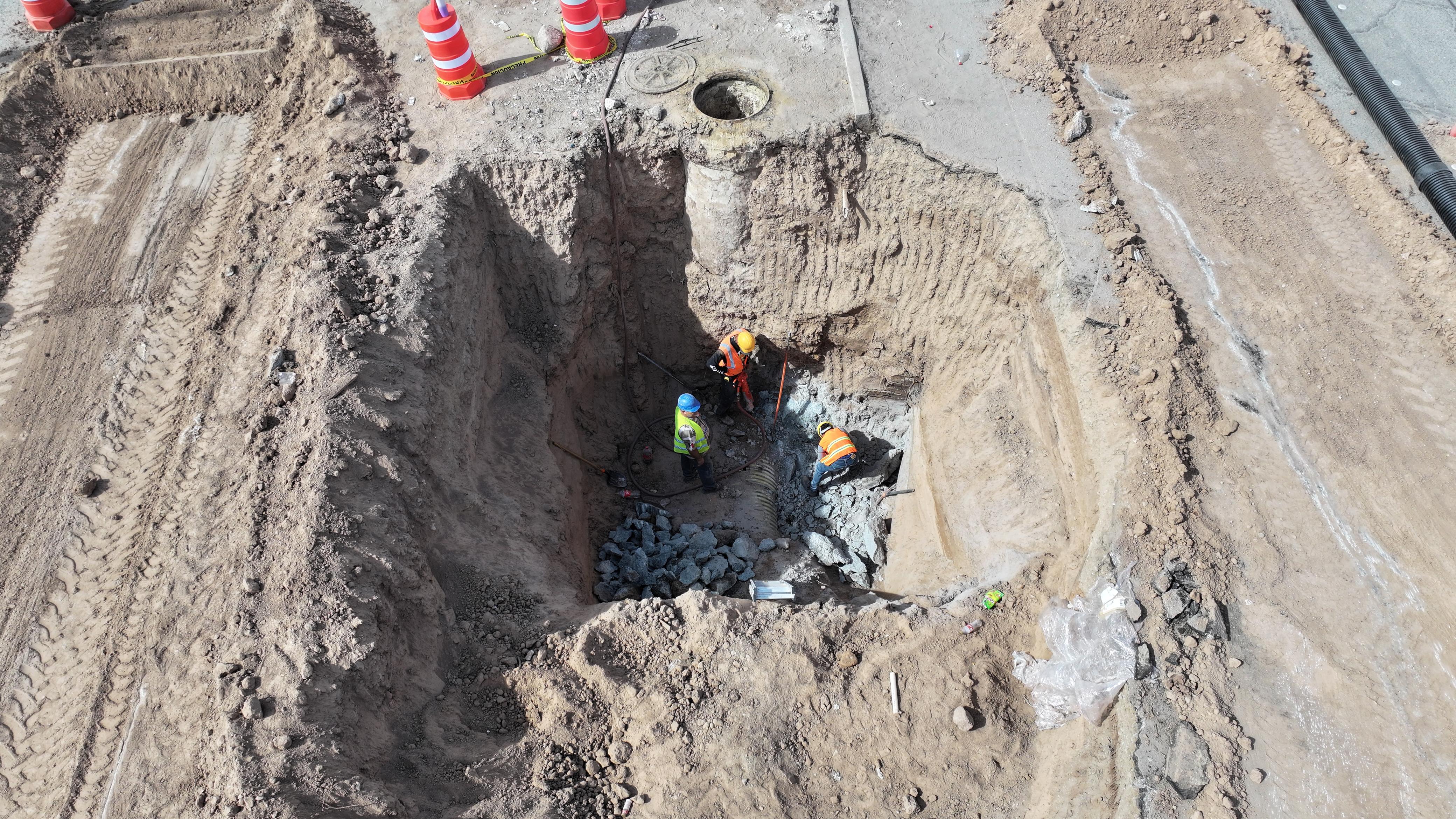Mexicali.– La Comisión Estatal de Servicios Públicos de Mexicali (CESPM) llevó a cabo la reparación del colector sanitario “Voluntad”, ubicado sobre Calzada Manuel Gómez Morin, en la colonia Hacienda Los Portales, con el objetivo de fortalecer la infraestructura de saneamiento en esta importante zona de la ciudad.