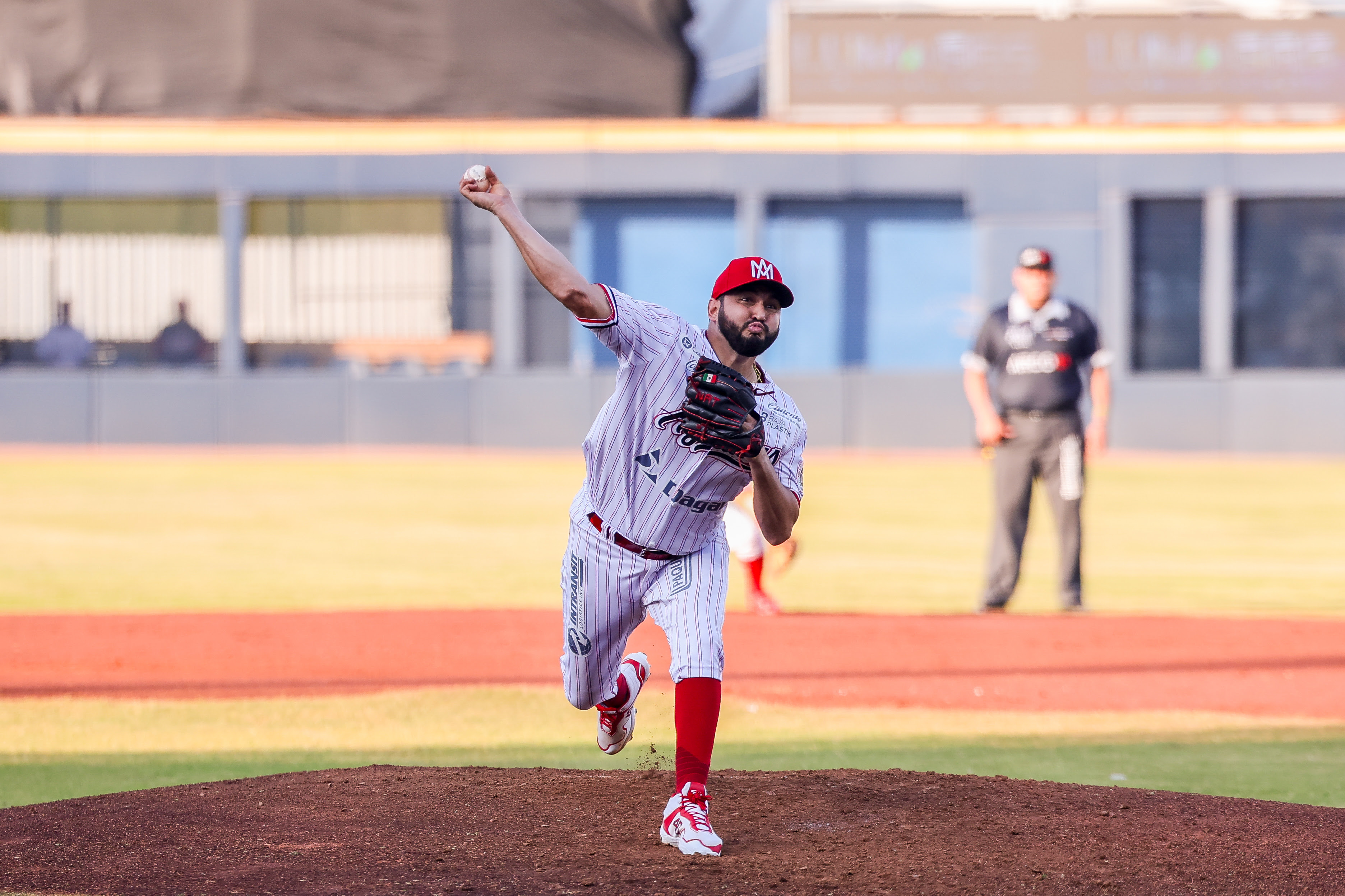 Mexicali, B.C., 30 de noviembre de 2025. El Nido de Los Águilas. David Reyes lanzó 8 entradas de calidad y una gran ofensiva de Los Águilas de Mexicali, combinación perfecta para que Los Emplumados doblegaran a Algodoneros de Guasave por score de 12 carreras a 1 para finalizar la serie dentro de la actividad de la temporada 2025-2026 de la Liga ARCO Mexicana del Pacífico, presentada por Caliente.mx.