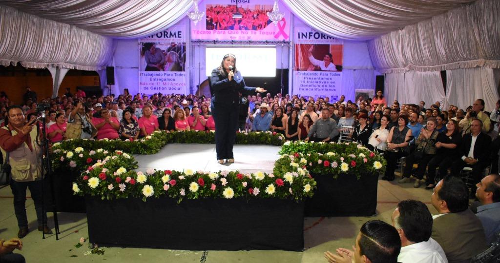 La representante popular por el tercer distrito de Mexicali, la diputada Victoria Bentley Duarte (PAN), presentó ayer ante cientos de personas reunidas en el club Camac, su primer informe de actividades legislativas y de gestoría social, en el que destacó que ha presentado 16 iniciativas de ley ante el Pleno del Congreso y entregado más de 11 mil apoyos de primera necesidad a ciudadanos, estudiantes, escuelas y grupos sociales que se han acercado a su módulo y oficinas para plantearle sus peticiones.