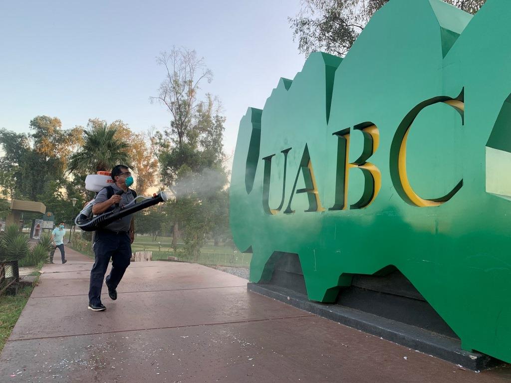 Se realizó la desinfección de la Unidad Universitaria Mexicali I de la Universidad Autónoma de Baja California (UABC) por parte del Instituto de Ingeniería, bajo la dirección del doctor Mario Alberto Curiel Álvarez, con el objetivo de bridar una protección adicional a los trabajadores universitarios y personas de la comunidad que hacen uso de las áreas públicas de la institución.
