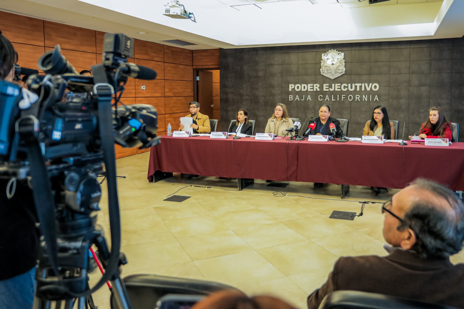 En conferencia de prensa en la ciudad de Mexicali, la funcionaria estatal informó que una denuncia se integra por deficiencias en el ejercicio del recurso federal para el mantenimiento de escuelas bajacalifornianas por 64 millones de pesos, por lo que se están previendo delitos de ejercicio ilícito del servicio público, uso ilícito de atribuciones y peculado, presuntamente cometidos por 11 personas servidoras públicas y un particular.