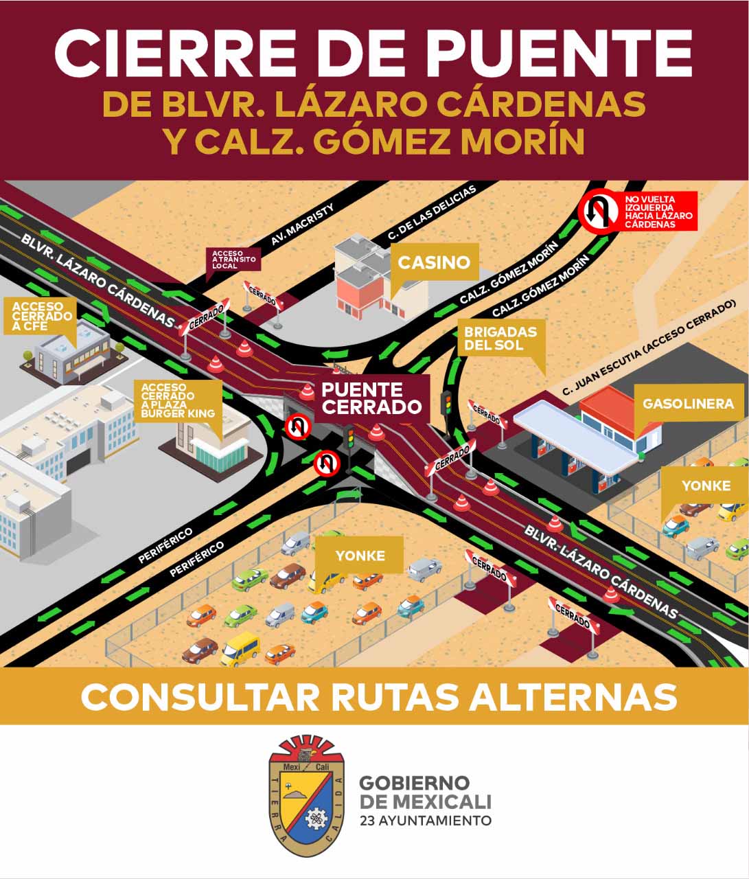 InicioMexicaliSE CIERRA CIRCULACIÓN EN PUENTE LÁZARO CÁRDENAS Y GÓMEZ MORÍN PARA CONTINUAR...