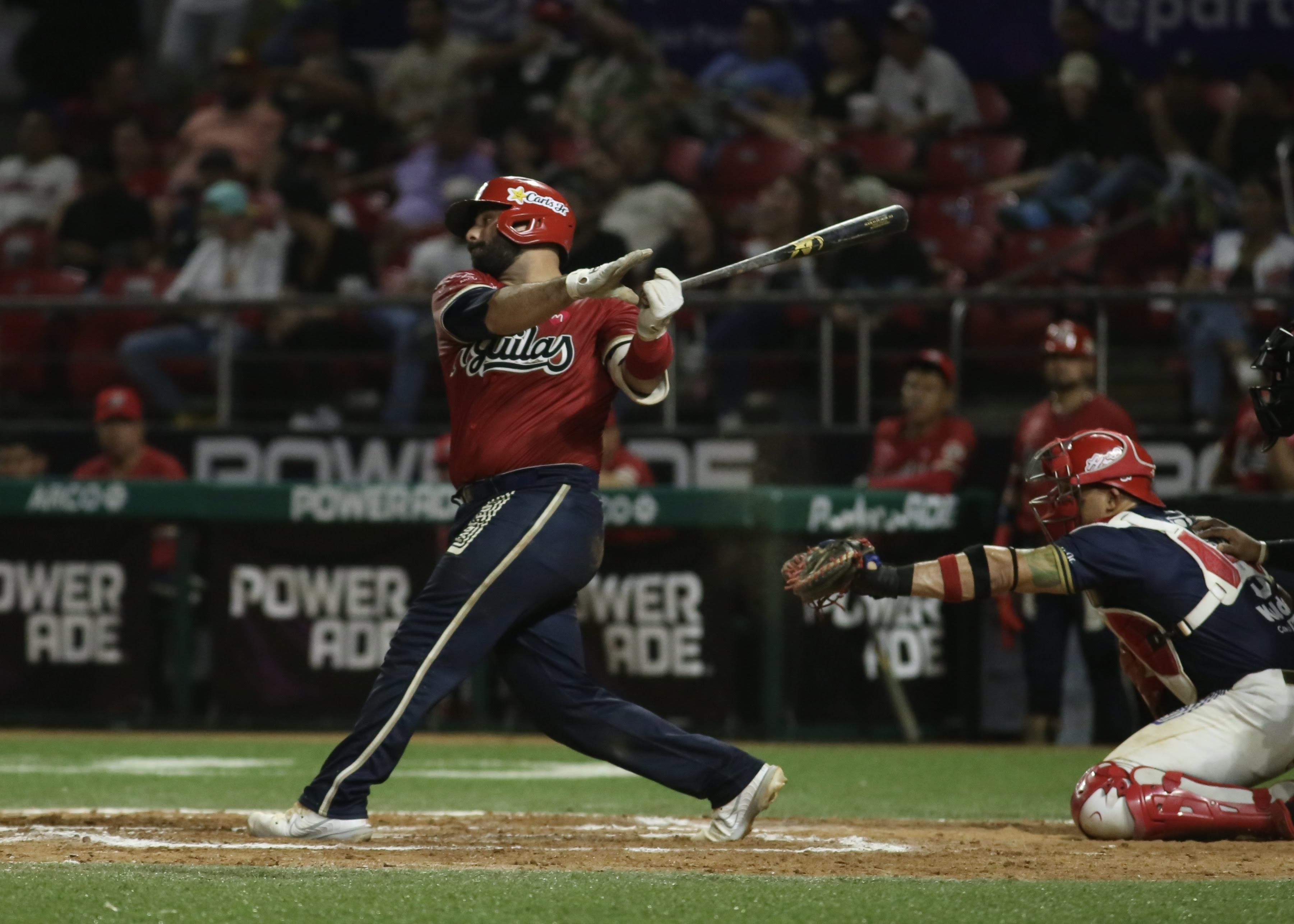El ataque Emplumado, emparejó el marcador en la alta del cuarto inning, Julián León consiguió su primera carrera producida con la armadura de Los Águilas al impactar doblete en línea al prado derecho que remolcó a Javier Salazar para colocar el 4-4 en el marcador.