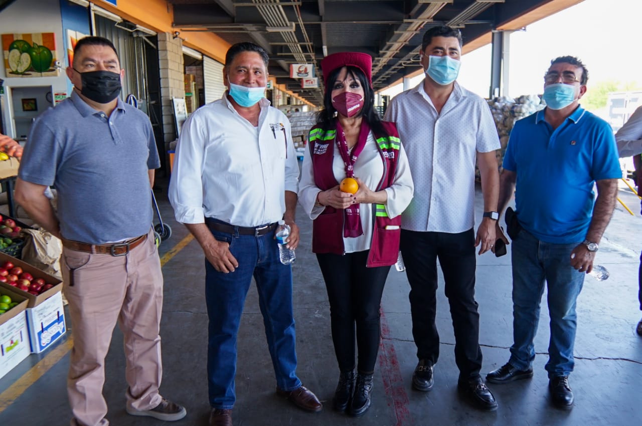 Acompañada de Cuauhtémoc Ibarra, Manuel Santillán y Daniel Garay, representantes de los comerciantes de Central de Abastos, la candidata a la Presidencia Municipal de Mexicali, realizó un recorrido por los establecimientos que distribuyen frutas, verduras, abarrotes y otros productos.