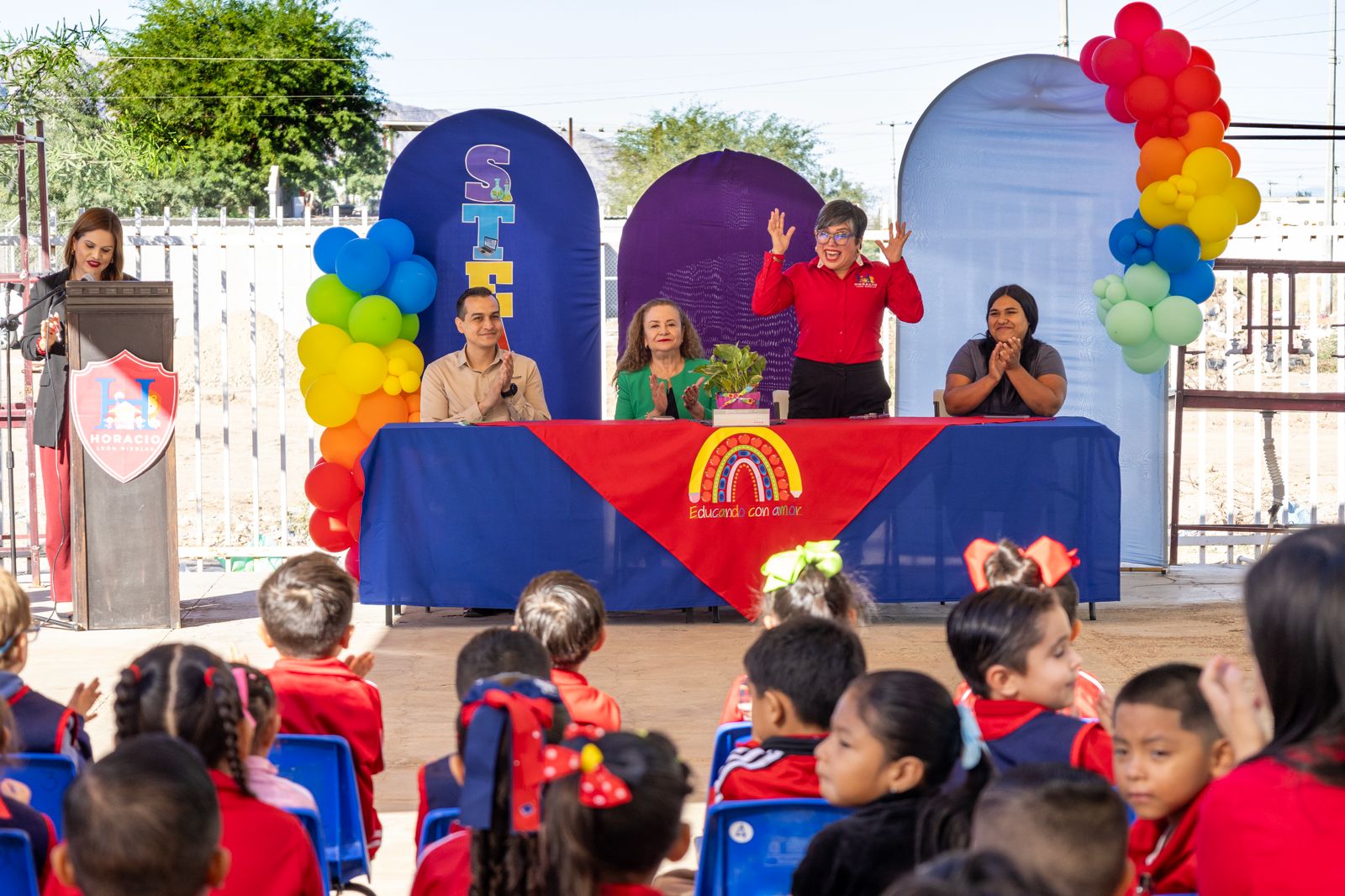 La entrega se realizó en el preescolar “Horacio León Nieblas”, y fue presidida con la representación de la secretaria de Educación, Irma Martínez Manríquez, por la delegada de la SE en Mexicali, Hildelisa Limón Sánchez, quien señaló que el programa Robótix, tiene como objetivo impulsar espacios de aprendizaje significativos, desarrollando el interés y la implementación de niñas, niños y jóvenes de 4 a 16 años en temas de Ciencia, Tecnología, Ingeniería, Arte y Matemáticas (STEAM), a través de una metodología práctica y divertida, así como de las pedagogías lúdicas para los docentes en México.