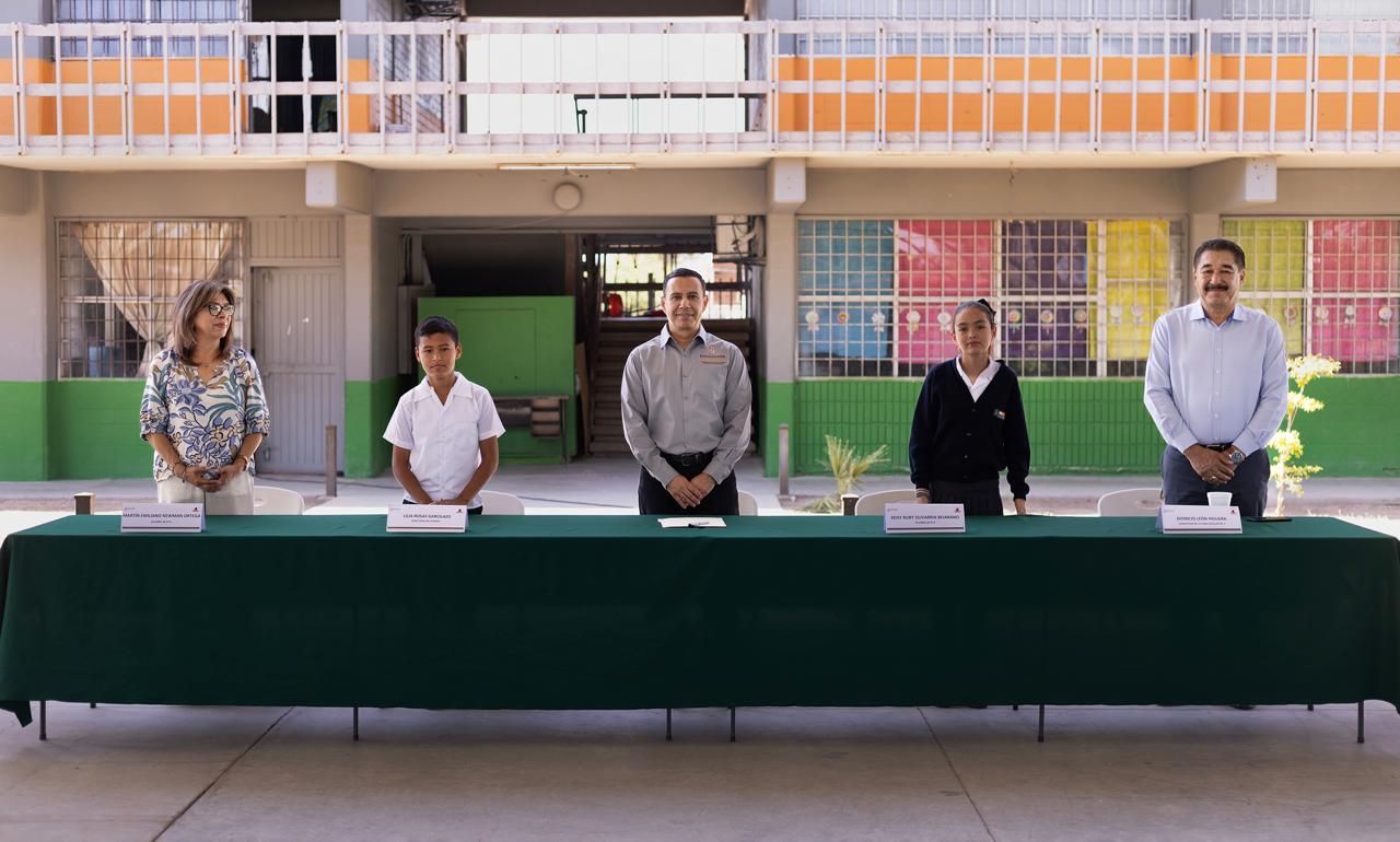 En el evento se contó con la presencia de Abel Hernández Maeda, de la coordinación de Evaluación y Tecnología Educativa; del profesor Dionicio León Higuera, supervisor de la zona escolar No. 75; representando a los beneficiados, Keisy Ruby Olavarría Bejarano y Martín Emiliano Newman Ortega, alumnos de 6to. A.