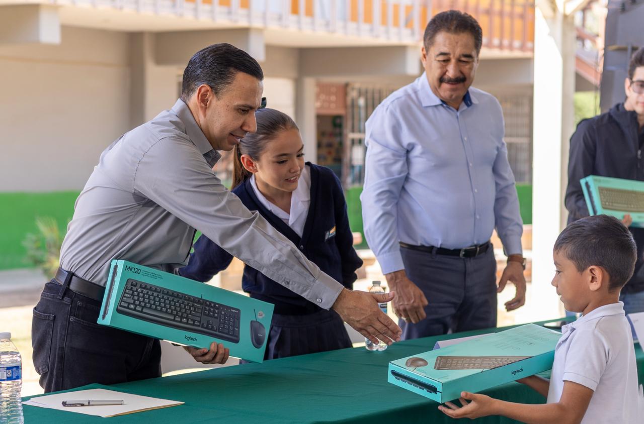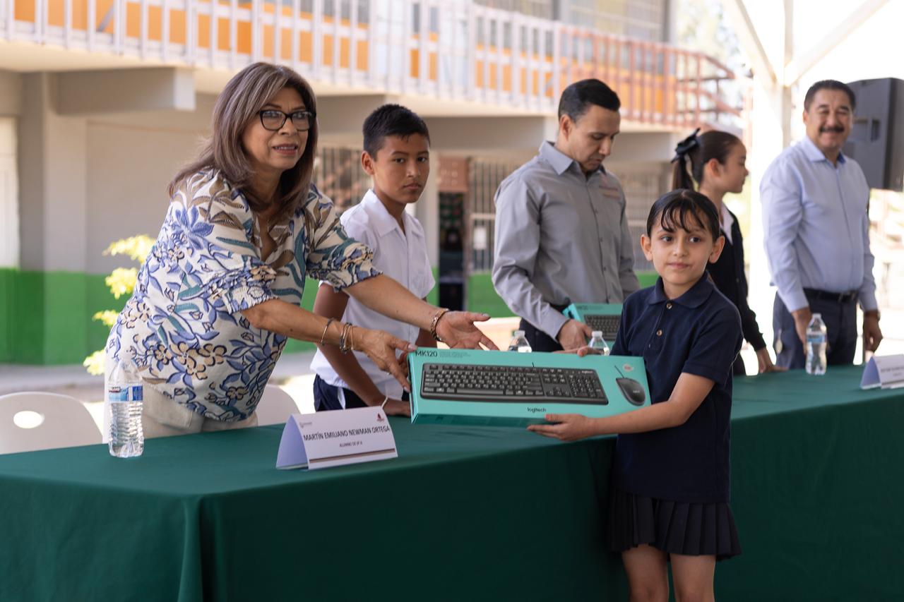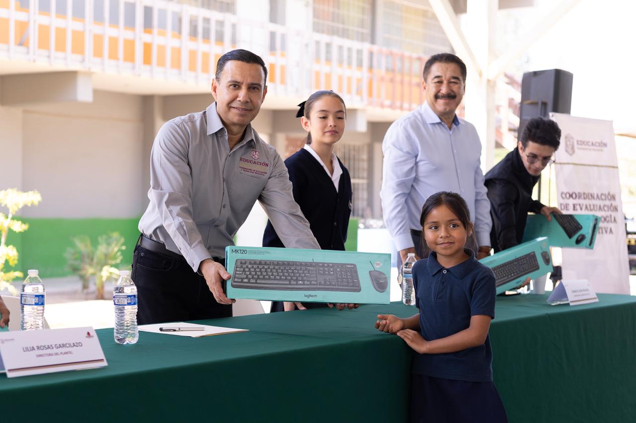 MEXICALI. La Secretaría de Educación de Baja California, entregó materiales tecnológicos a la escuela primaria “Capitán Miguel de la Madrid” del municipio de Mexicali, con la finalidad de fortalecer las acciones que se realizan en las aulas de medios para desarrollar el pensamiento crítico, la solidaridad y el aprendizaje colaborativo como lo establece la Nueva Escuela Mexicana.