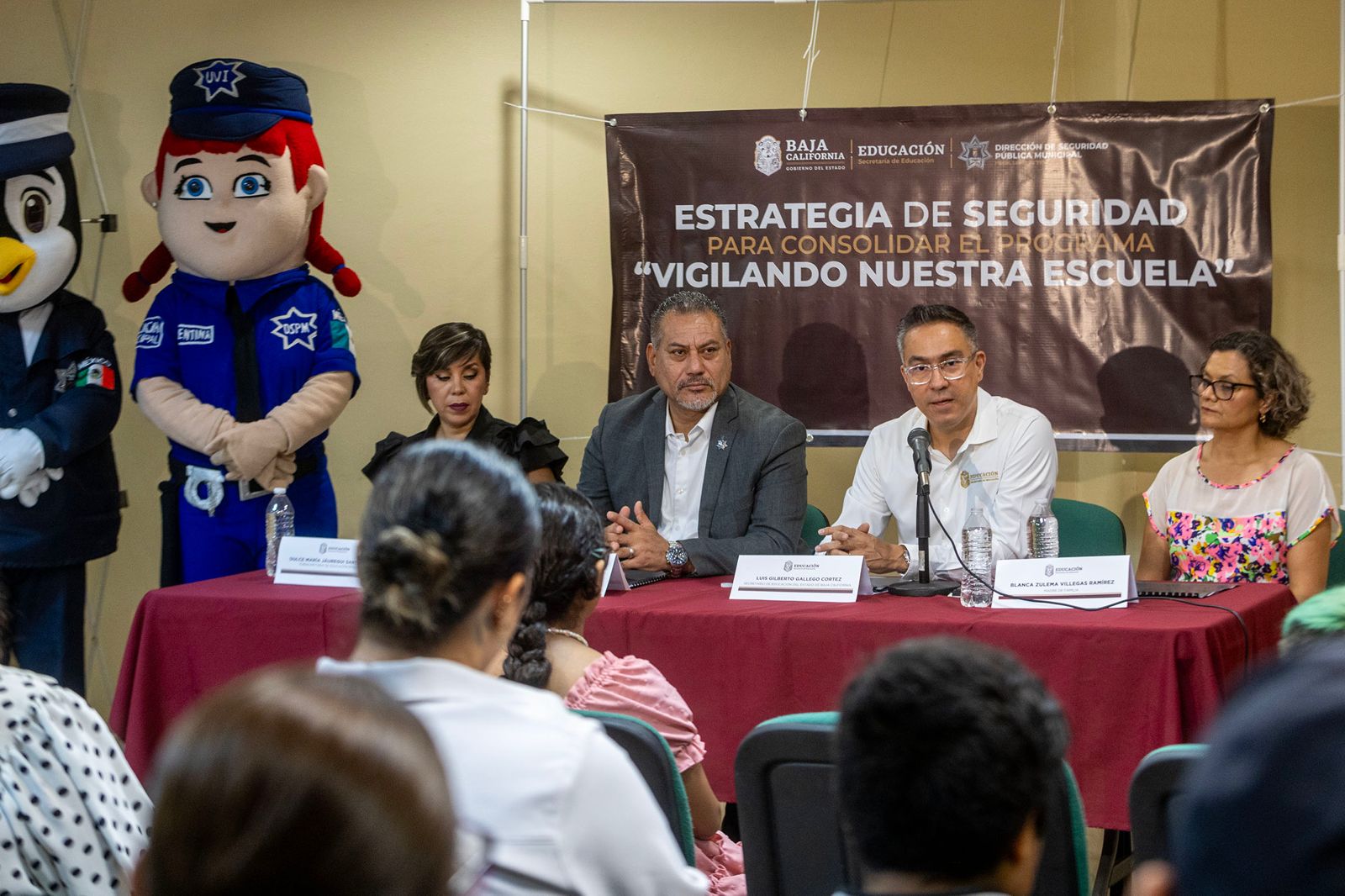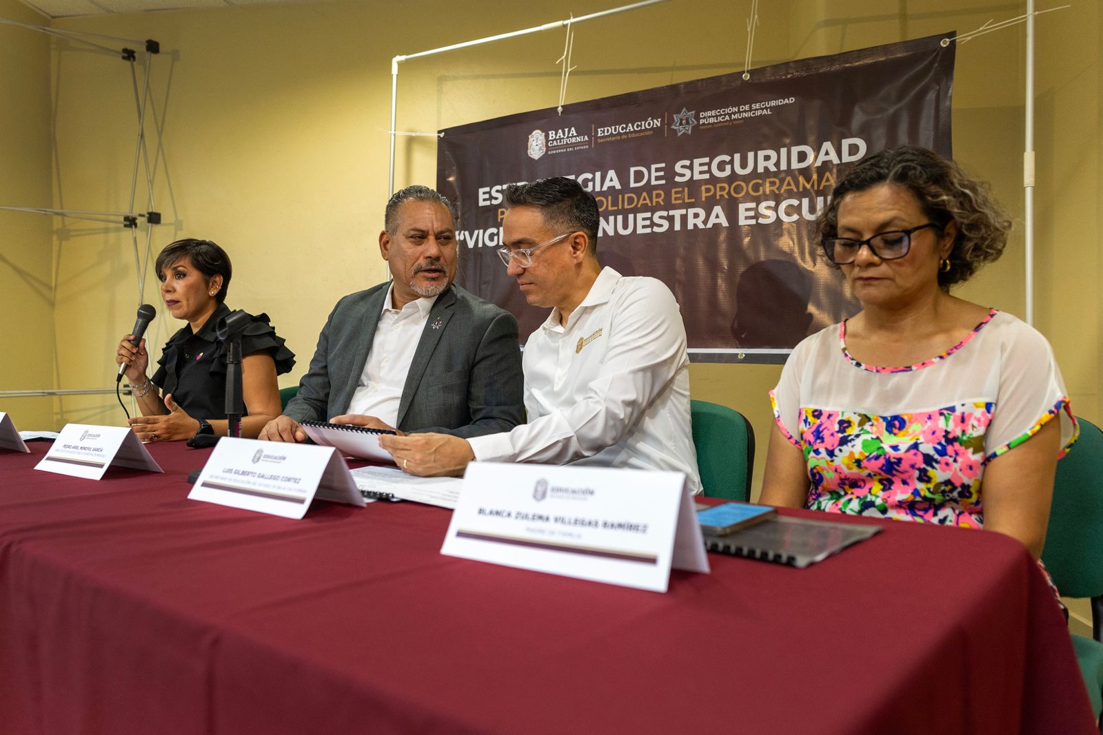 En lo anterior, indicó el funcionario educativo, radica la importancia de estrechar de manera permanente, los lazos de colaboración entre sociedad y gobierno, principalmente con las madres y padres de familia de nuestras escuelas, los vecinos de los planteles públicos y los escuadrones de vigilancia internos organizados por los directivos; además con cada uno de los organismos de seguridad municipal, estatal y federal, no sólo para los rondines preventivos durante los recesos escolares, sino trabajar mano a mano con nuestra comunidad escolar y establecer temas prioritarios que puedan poner en riesgo a las niñas, niños y adolescentes que cursan la Educación Básica Baja California.