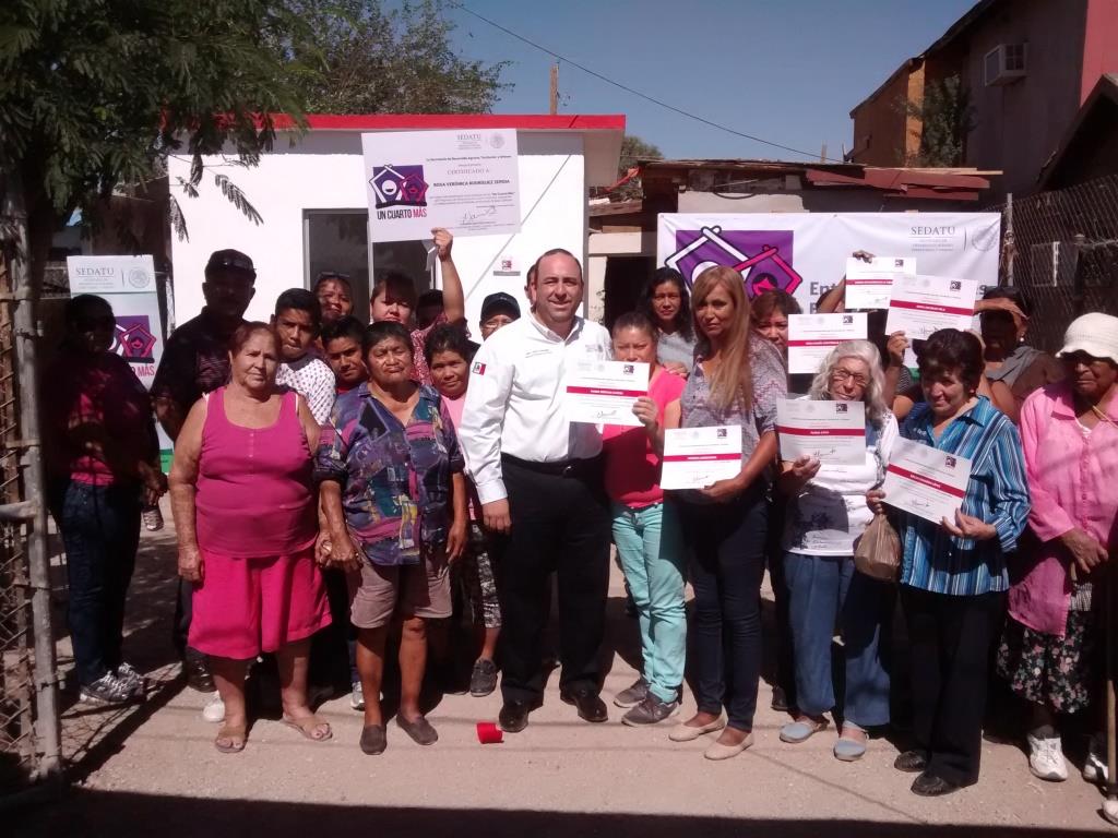 El delegado de la Secretaría de Desarrollo Agrario, Territorial y Urbano (SEDATU), en Baja California, José Lauro Aréstegui Verdugo entregó los primeros 30 “Cuartos Rosas” en Mexicali, de un total de 2 mil acciones que se darán en este 2016 en todo el Estado.
