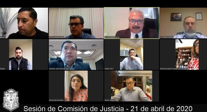 En el seno de la Comisión de Justicia que preside el diputado Víctor Manuel Morán Hernández, se aprobaron diversos proyectos de dictamen que contienen iniciativas sobre la materia, con la participación por videoconferencia de los diputados integrantes, así como del presidente del Tribunal de Justicia del Estado y del representante del Poder Ejecutivo Estatal.
