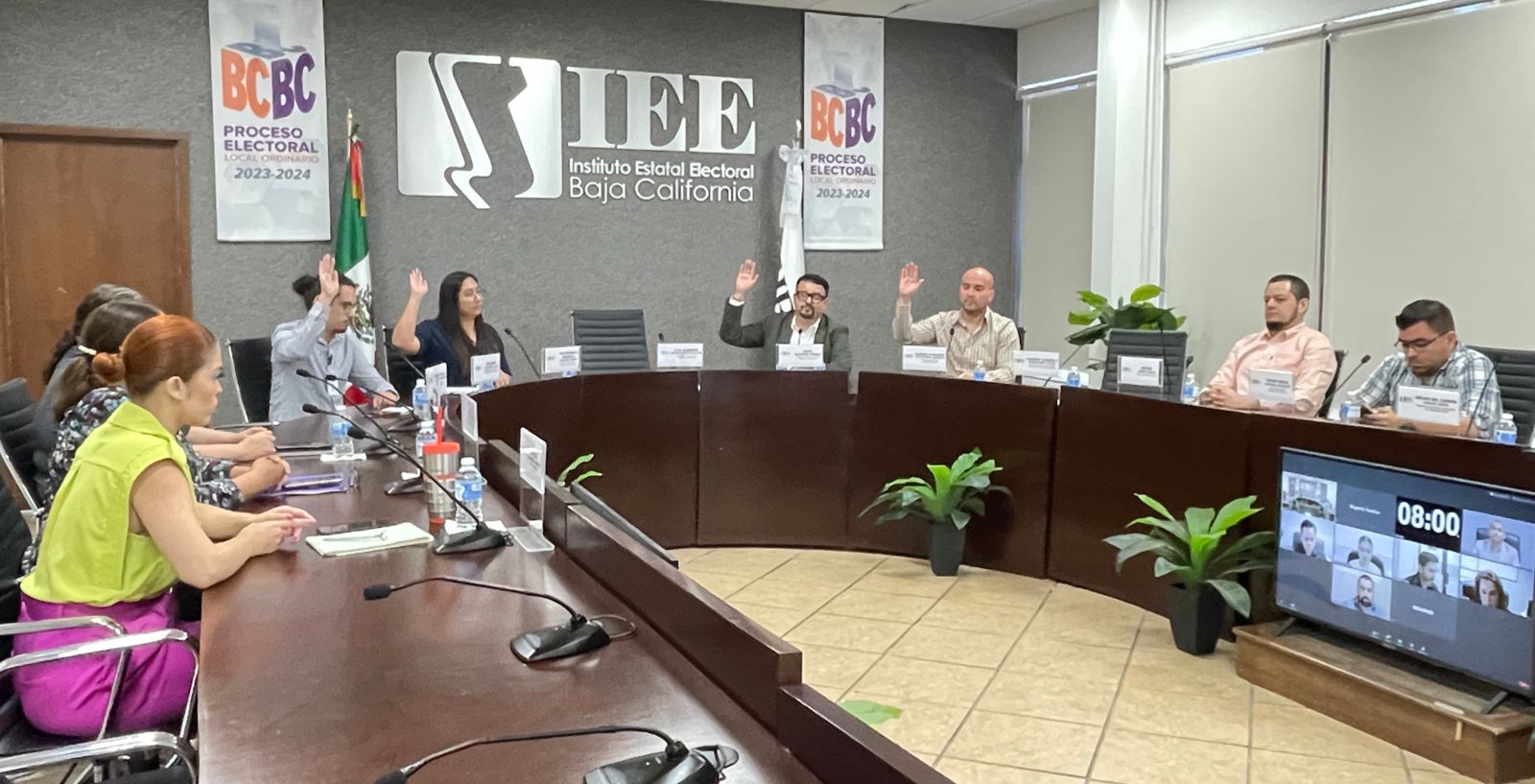 MEXICALI, B. C. 20 DE JUNIO DE 2024. – Integrantes de la Junta General Ejecutiva del Instituto Estatal Electoral de Baja California (IEEBC), así como las personas que encabezan los trabajos las diversas áreas que conforman a este organismo, celebraron este jueves su 6ª Sesión Ordinaria, misma que fue conducida por su presidente Luis Alberto Hernández Morales y en las que se dio cuenta de las actividades realizadas durante el pasado mes de mayo.