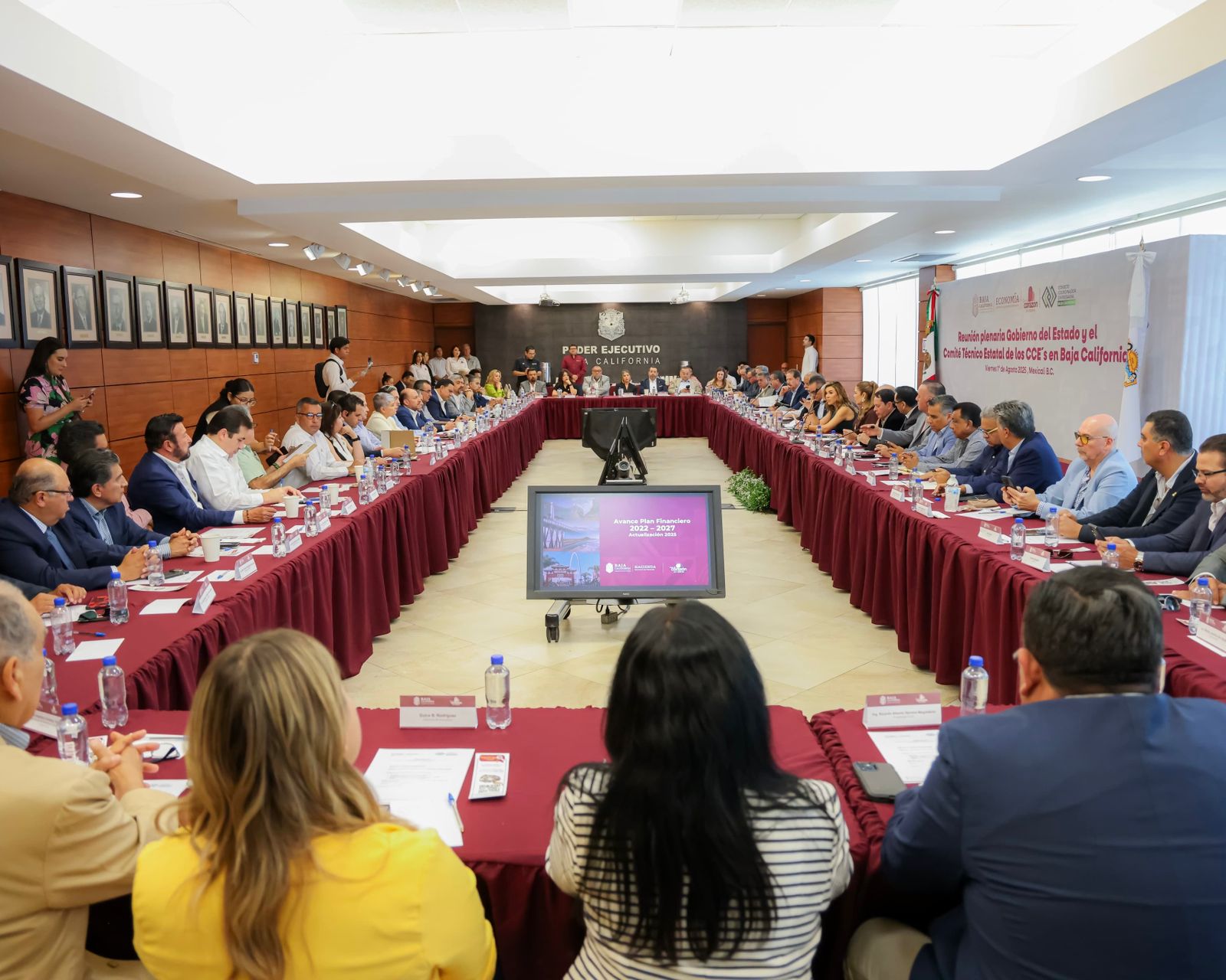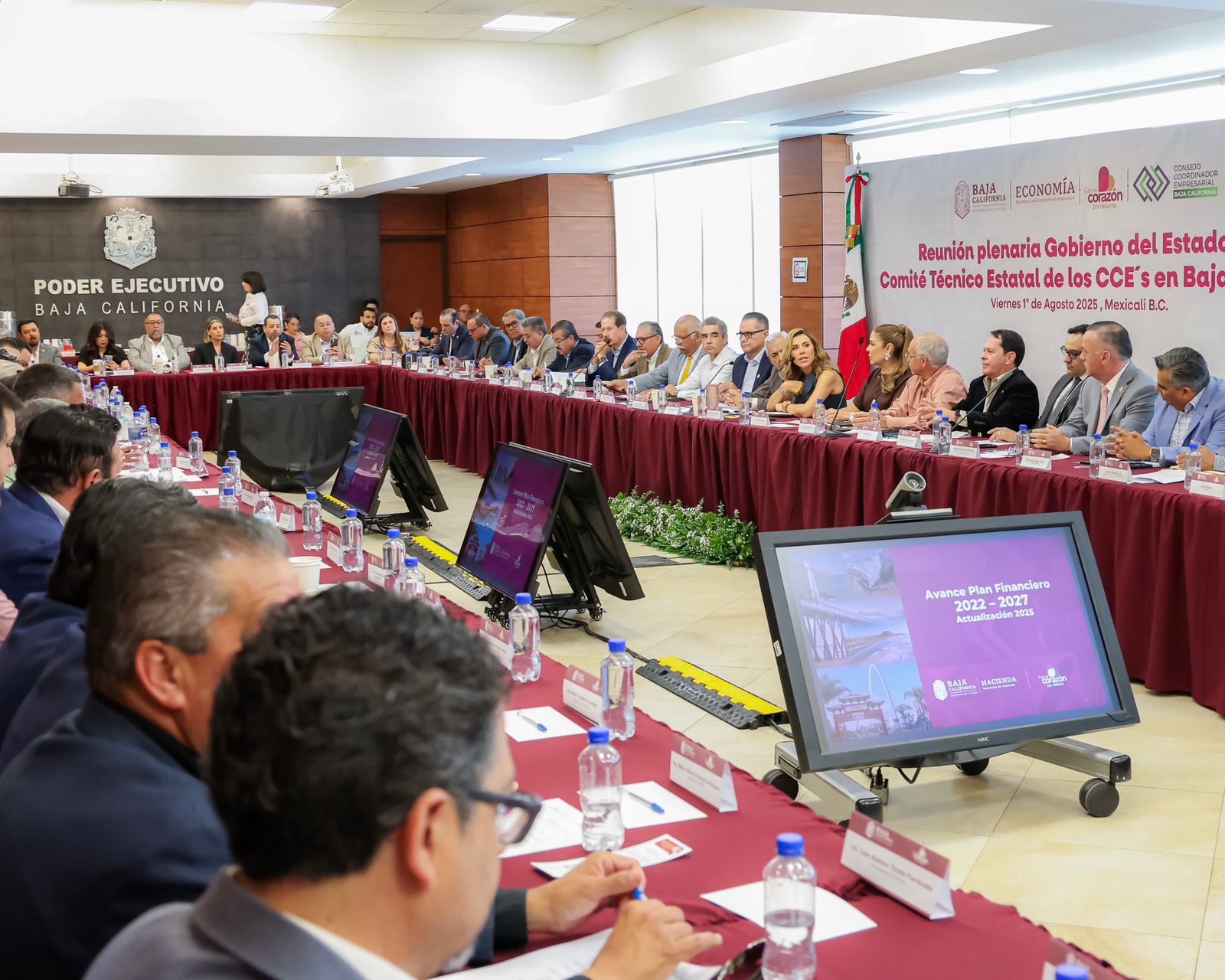Durante la sesión plenaria entre el Gobierno del Estado y el Comité Técnico Estatal de los Consejos Coordinadores Empresariales de Baja California, la mandataria subrayó que, en los tres años y medio de su administración, se ha invertido más en infraestructura que en los tres gobiernos estatales anteriores, logrando reducir significativamente el rezago en obra pública.