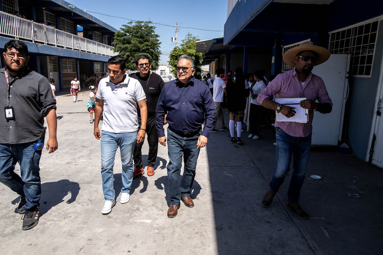 Este martes, el titular de la dependencia, Gerardo Arturo Solís Benavides, realizó un recorrido de inspección en la escuela primaria “30 de Abril” del fraccionamiento Pedregal, ubicada dentro de la zona este de Mexicali.