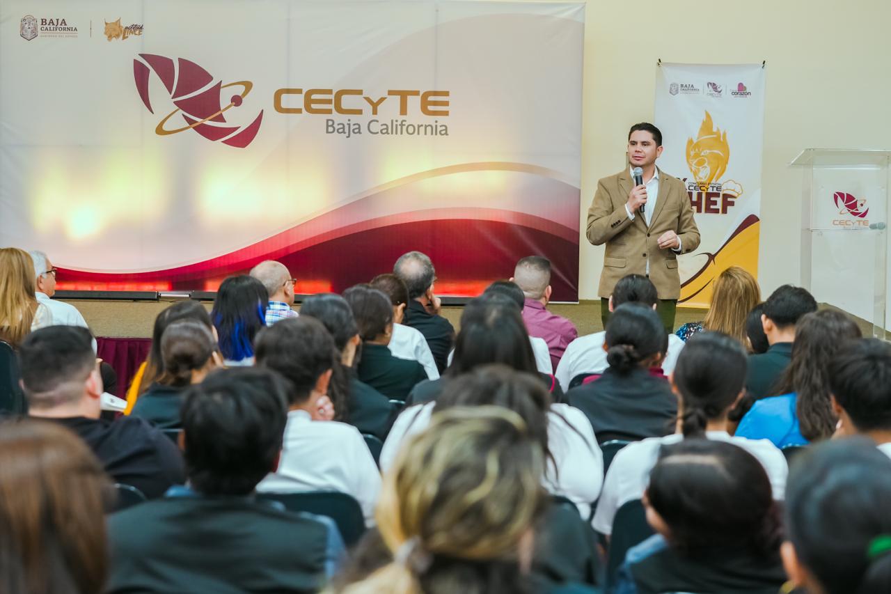 Durante la inauguración, se contó con la presencia del Lic. Alejandro Rosales Sotelo, Subsecretario de Educación Media Superior, Superior e Investigación; Lic. Alan Diego Valenzuela Villa, Presidente de la CANIRAC Mexicali; y Lic. Germán Palazuelos, Jefe del Departamento de Fomento a las Industrias Creativas y orgulloso egresado del CECyTE BC, como parte del presidium.