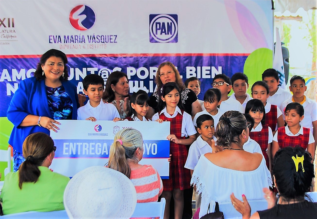 La diputada Eva María Vásquez Hernández hizo entrega de dos apoyos en la colonia Aurora ubicada en el segundo distrito local, en respuesta a las solicitudes de los vecinos de la colonia y con el objetivo de rehabilitar las instalaciones del Centro Comunitario y de tres aulas de la Escuela Primaria Dip. Aurora Jiménez Palacios.