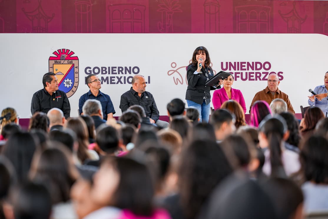 Mexicali, B.C. A 04 de octubre 2025.- Transformando la vida de niñas, niños y jóvenes, la presidenta municipal Norma Bustamante inauguró este sábado el programa “D.A.R.E. después de Clases” en la Escuela Secundaria General No. 23 “SNTE”, ubicada en Valle de Pedregal.