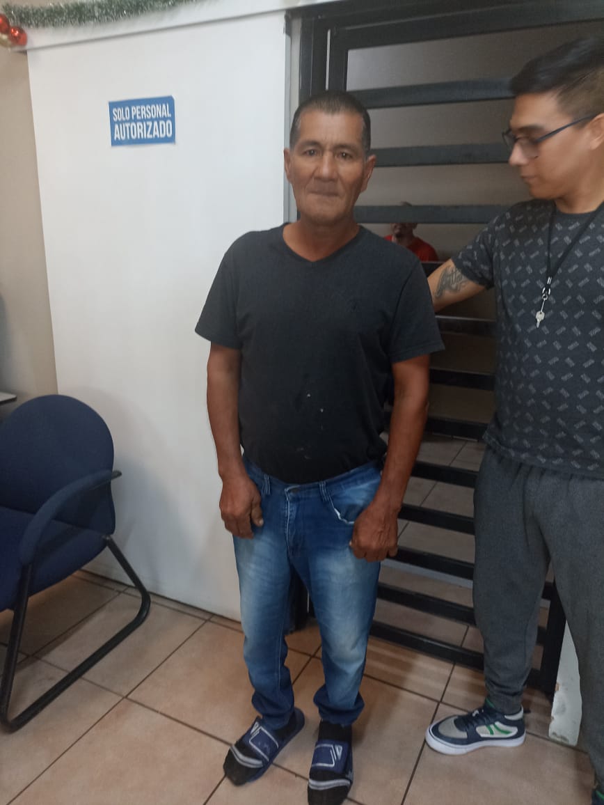 Mexicali, Baja California, a 14 de diciembre de 2025. Agentes de la Unidad de Búsqueda y la Unidad para la Atención de Personas en Estado de Vulnerabilidad de la Policía Municipal de Mexicali, trasladaron la tarde de este sábado a San Luis Río Colorado, Sonora, al señor Martín Salcido Valenzuela, de 59 años de edad, mismo que horas antes fue localizado durante una jornada de búsqueda en vida y difusión pedestre que se implementó en distintos puntos de la ciudad.