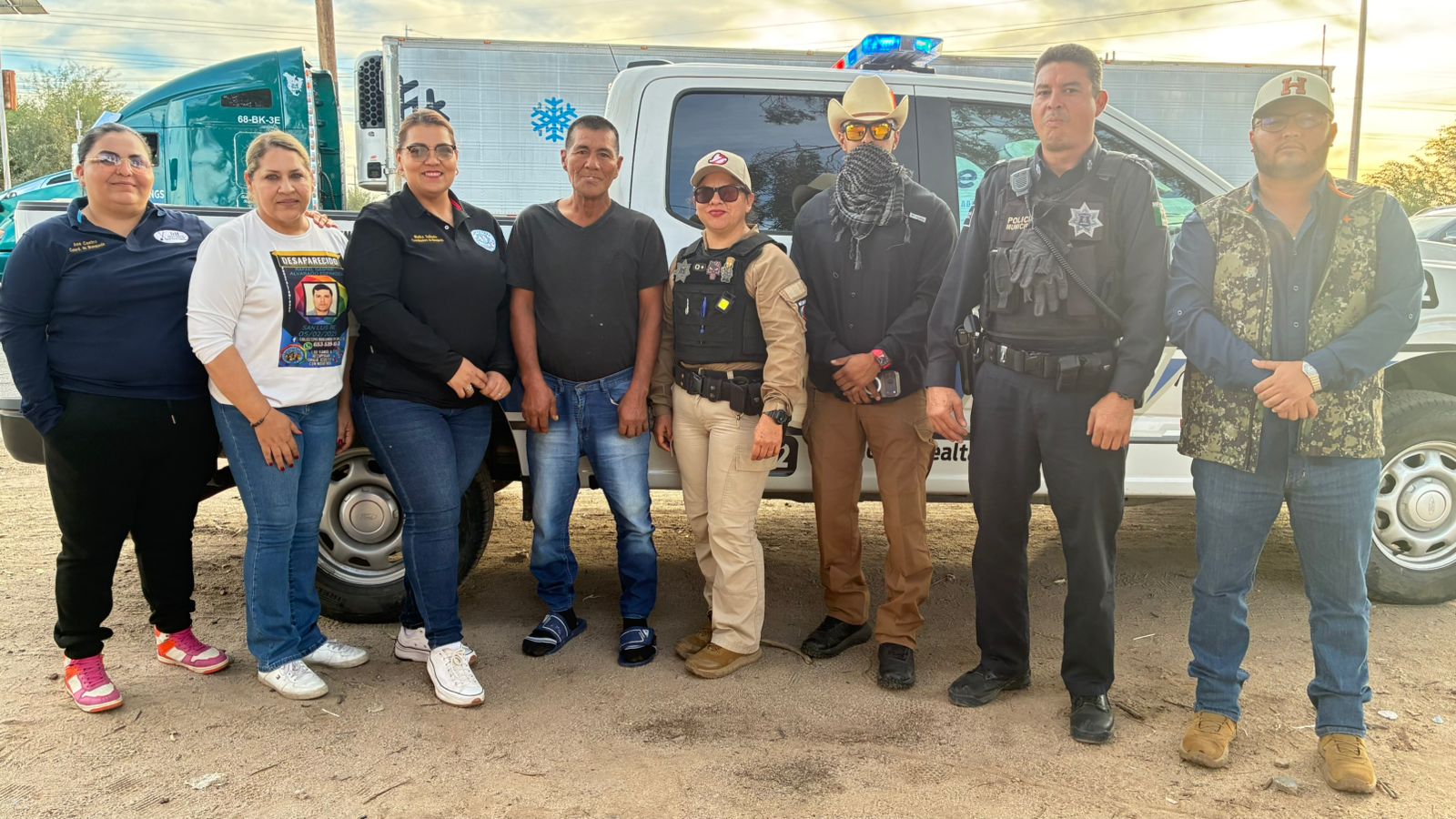 Mexicali, Baja California, a 14 de diciembre de 2025. Agentes de la Unidad de Búsqueda y la Unidad para la Atención de Personas en Estado de Vulnerabilidad de la Policía Municipal de Mexicali, trasladaron la tarde de este sábado a San Luis Río Colorado, Sonora, al señor Martín Salcido Valenzuela, de 59 años de edad, mismo que horas antes fue localizado durante una jornada de búsqueda en vida y difusión pedestre que se implementó en distintos puntos de la ciudad.