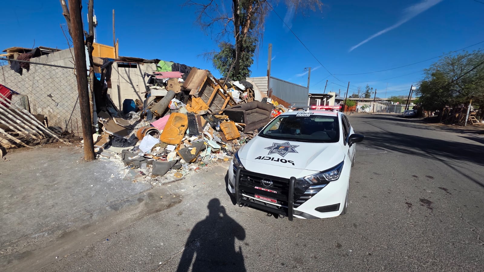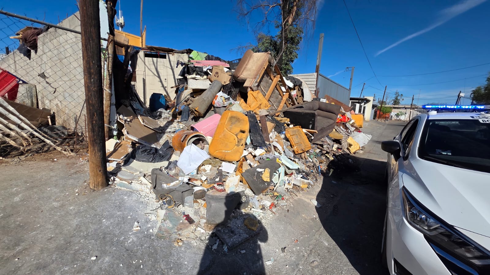 Mexicali, Baja California, a 22 de marzo de 2026. Derivado de una denuncia ciudadana en la que se alertaba sobre un domicilio utilizado como basurero clandestino en la colonia Hidalgo, agentes de la Unidad Ecológica de la Policía Municipal elaboraron este domingo una boleta de infracción por la cantidad de 100 UMAS debido a la gran acumulación de residuos sólidos que encontraron en dicho predio.