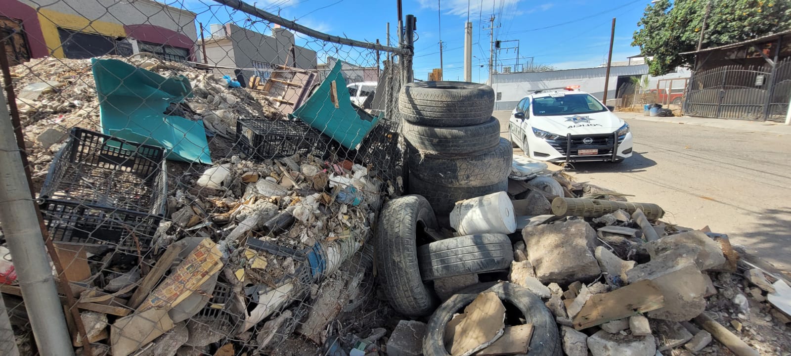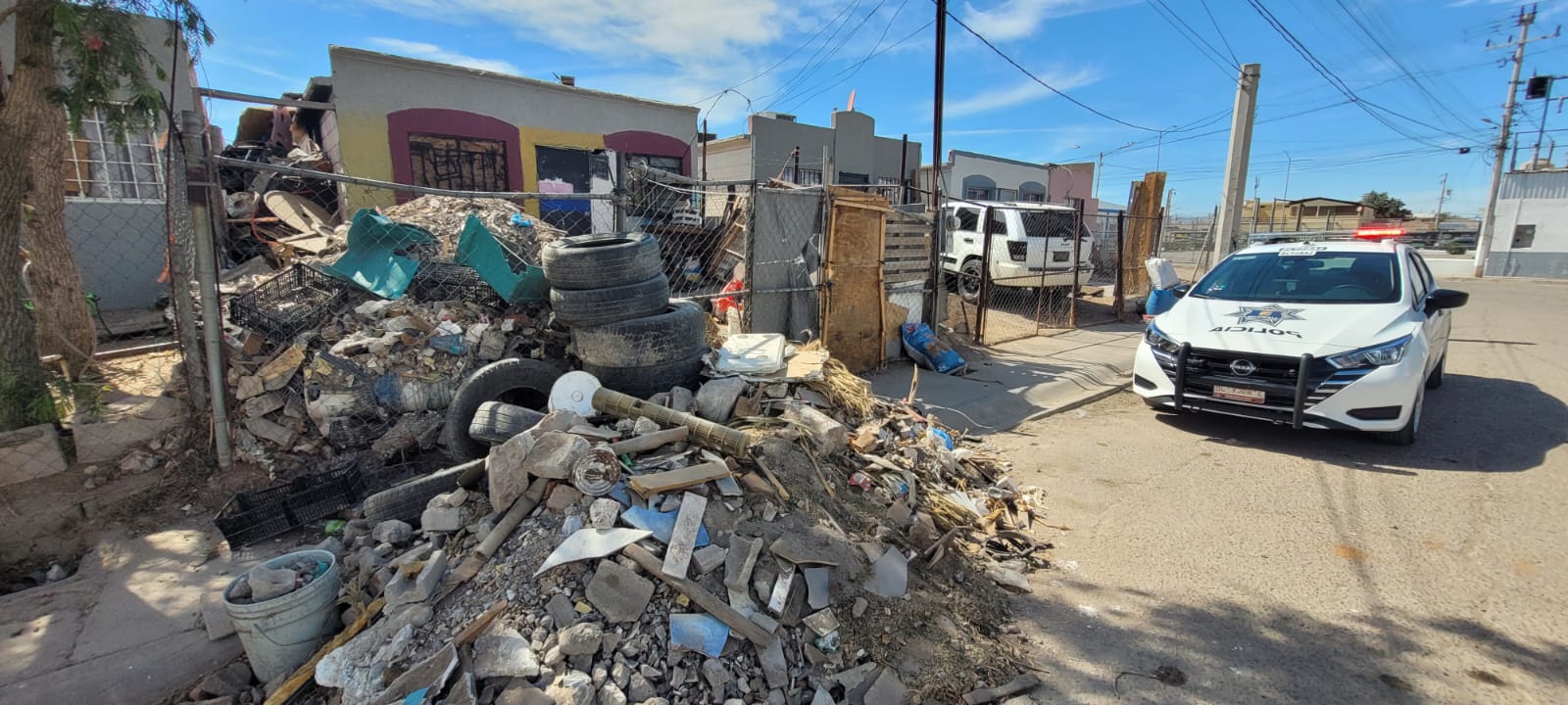 Mexicali, Baja California, a 02 de marzo de 2026. Derivado de una denuncia anónima en la que se señaló la existencia de un domicilio donde presuntamente se realizan cobros por recibir escombro y basura, agentes de la Unidad Ecológica de la Policía Municipal elaboraron una boleta de infracción por el acumulamiento de desechos en el fraccionamiento Misión San Ignacio, ubicado al poniente de Mexicali.